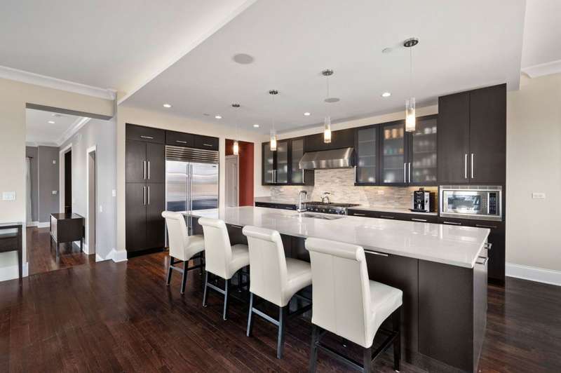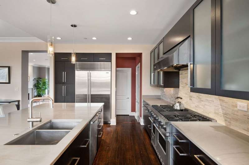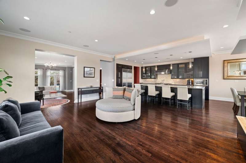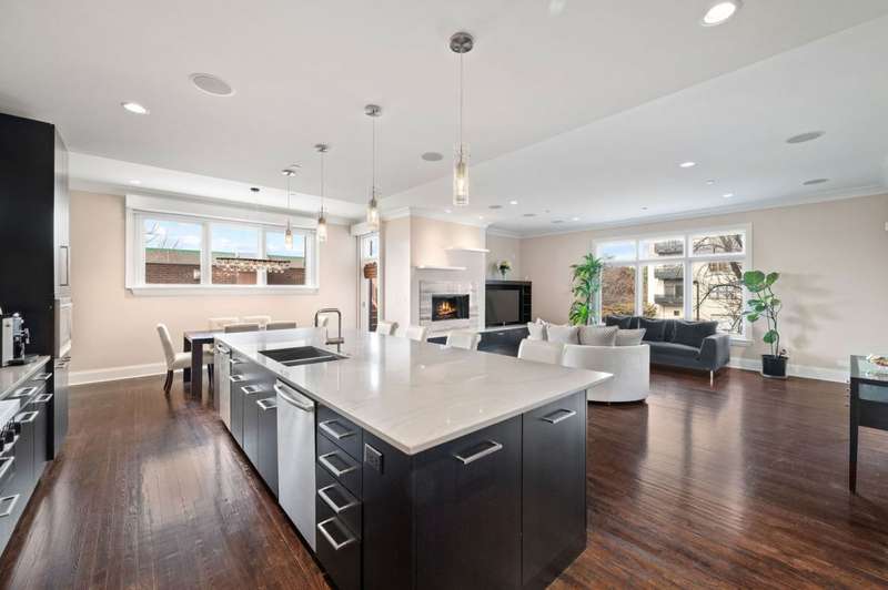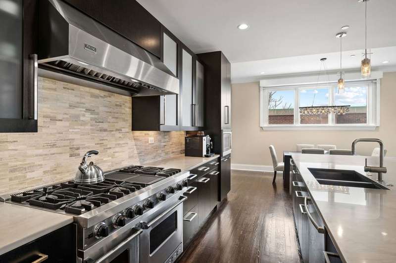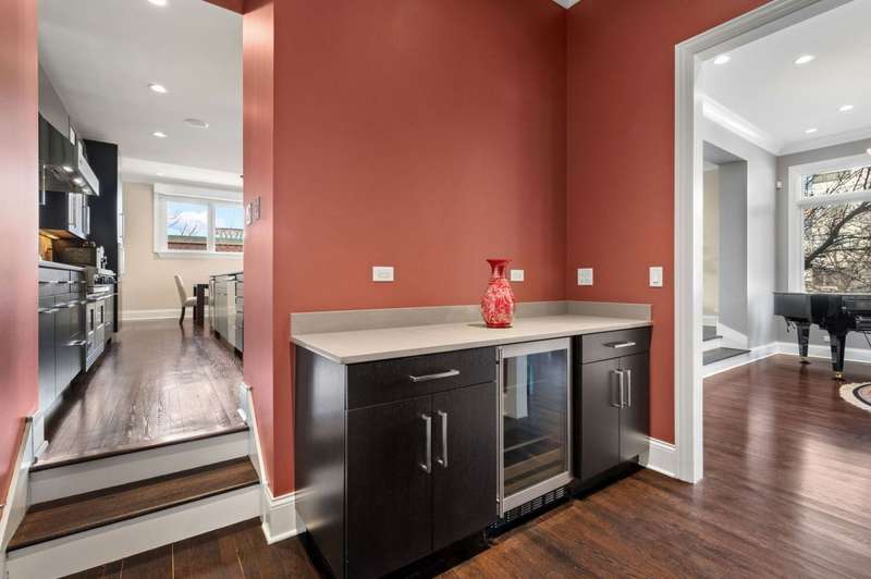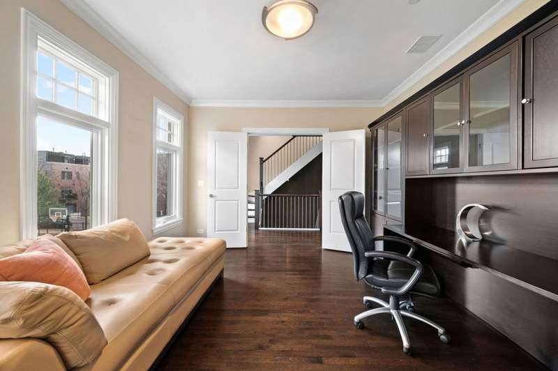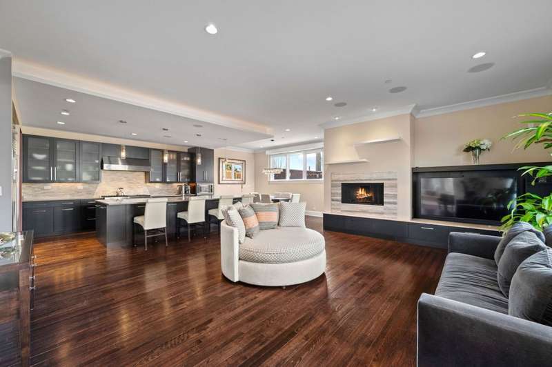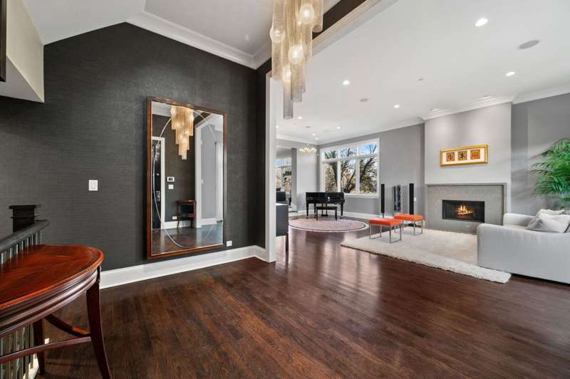 Welcome to this stunning 6-bedroom, 5.5-bathroom Environs built single-family home in the exclusive Hartland Park community-a secluded enclave in Lincoln Park featuring a private gated 1/2-acre park. This corner home was the former model home flooded with natural light from three exposures and offers 6,300 sq. ft. of refined living space on an extra-wide lot. Step inside to find hardwood floors throughout all levels, huge formal living room, a gracious family room and dining area off of the chef's dream kitchen with a massive island, Viking 6-burner range with double oven and grill, butlers pantry with dry bar, wine fridge, pantry, closet and powder room. The kitchen/dining/family room area leads to a spacious walk-out deck and small yard space. The second floor hosts four generously sized bedrooms with 2 of them ensuite, one of two fully outfitted laundry rooms with sink, storage, and folding bar, plus organized closets throughout. The entire third floor is dedicated to the luxurious private primary suite, boasting a spa-like bath with dual vanities, tv's, an air-jet soaking tub, and a steam shower PLUS tons of closet space. The expansive lower level is an entertainer's dream, featuring a massive family room, wet bar with a wine cooler, bedroom, a full bath and a theater room with projector, screen and 6 comfy seats. Additional highlights include professionally organized closets and pantries, wood burning fireplace, hot water radiant heated floors, a home security system, zoned HVAC with newer furnaces, A/C condensers, and water heaters, and a second full laundry room. Enjoy the convenience of an attached 2.5 -car garage. Hartland Park offers private park with basketball court, playground, and green space plus a private dog park. This exceptional home offers unparalleled luxury, space, and privacy in one of Chicago's premier neighborhoods, a rare opportunity in Hartland Park!