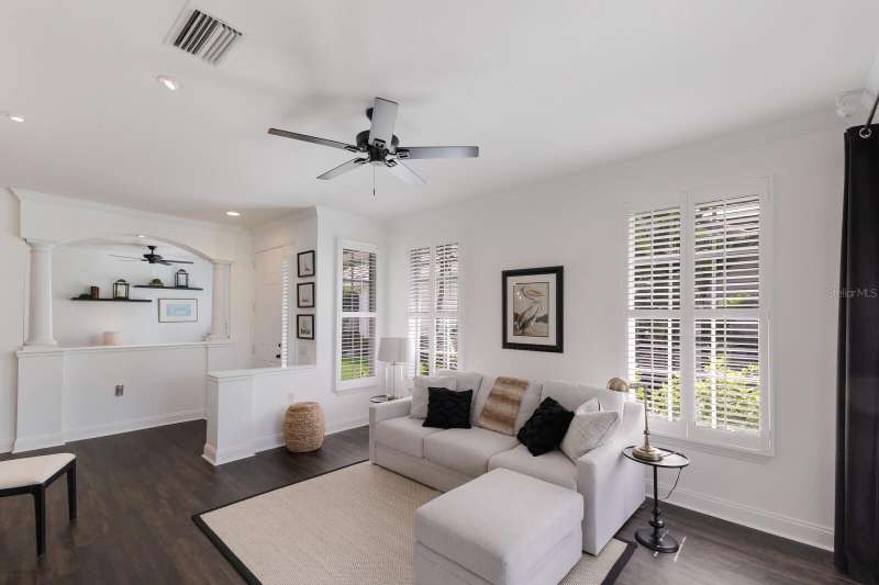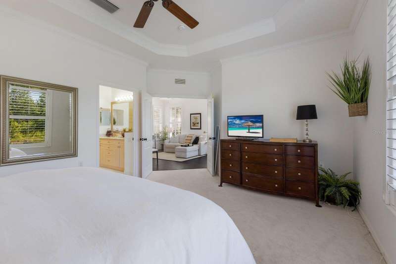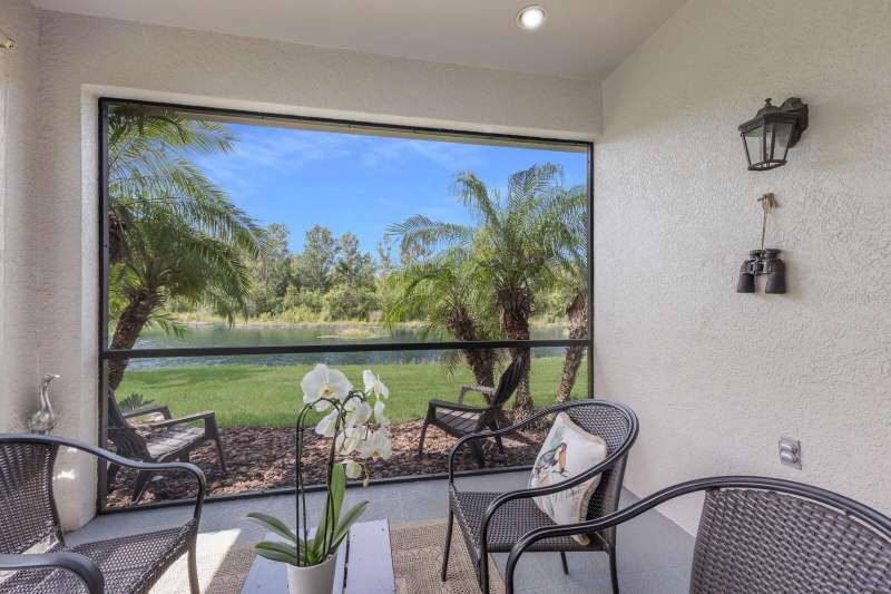 Welcome to 7032 Old Tabby Circle, a stunning updated villa nestled within the gates of the Lakewood Ranch Golf & Country Club. Enjoy tranquil water & preserve views in this sun-drenched, maintenance-free home that perfectly captures the essence of Florida living! Step inside to discover an open-concept layout ideal for both relaxed everyday living and effortless entertaining. The updated kitchen features white wood cabinetry, stainless appliances, quartz countertops and a breakfast bar...seamlessly connecting to the dining, flex room and the living room. The living room boasts large glass sliders that open to a screened lanai—the perfect place to enjoy a morning cup of coffee while taking in the beauty of the shimmering pond and endless native Florida bird sightings. This thoughtfully designed split-bedroom floorplan offers optimal privacy. The Primary suite overlooks serene water views & includes a custom designed walk-in closet, tray ceiling, plantation shutters & a beautifully updated en-suite bath with dual quartz vanities & a walk-in shower with new glass enclosure. The second bedroom & bath are ideal for guests, while the flex space offers versatility as a den, home office or an extra guest space. Additional highlights not to be missed are: New luxury vinyl flooring, updated lighting & fans, tray ceilings & crown molding, plantation shutters, a freshly painted interior with a modern, transitional style, a NEW AC unit for peace of mind and a spacious two-car garage with ample storage. Located in the desirable Weston enclave, this home offers a low HOA fee that covers landscape & irrigation, driveway & sidewalk & roof cleaning annually, exterior painting as needed, cable tv & internet and access to the Weston community pool & spa, just steps away! Elevating everyday living into something truly special...The Weston neighborhood in particular offers an array of activities to include book clubs, Mahjong, Yoga & Water aerobics at the community pool! While a golf membership IS NOT included... There are OPTIONAL memberships available to join the Lakewood Ranch Golf & CC. These optional memberships for an ADDITIONAL FEE offer 4 championship golf courses, 18 Har-tru tennis courts, an Olympic size pool, pickleball, a state-of-the-art fitness center and 3 clubhouses with dining and social activities. This location can't be beat and is just minutes from the endless dining, shopping and entertainment experiences at LWR Main St, Waterside, CenterPoint and the UTC Mall area. It is also a short drive to Benderson Park, the new Mote Marine Aquarium, downtown Sarasota and our world-famous area beaches! Don't miss this opportunity to own your piece of paradise... schedule a tour today!