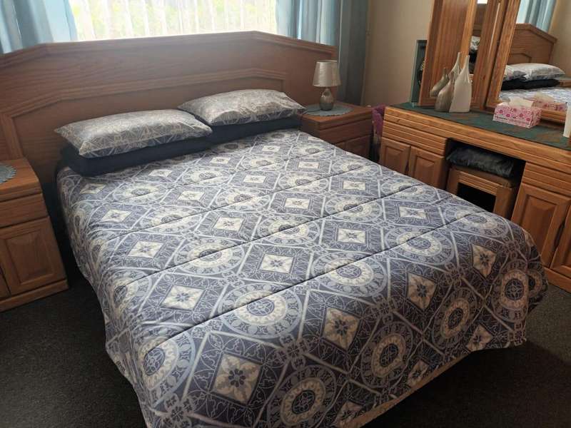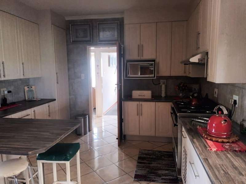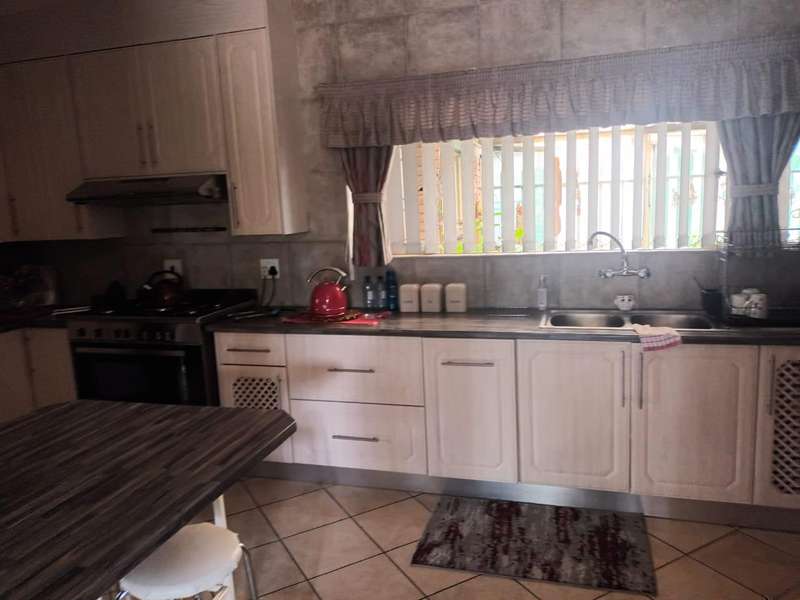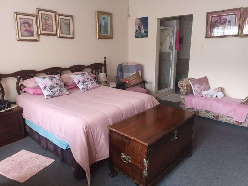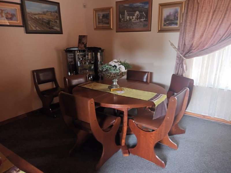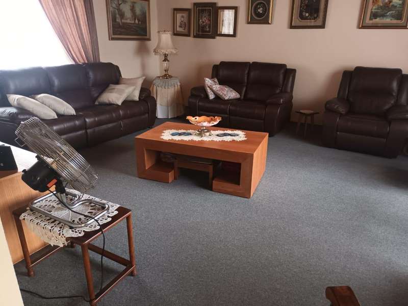 This beautiful and spacious family home offers a perfect blend of comfort and elegance. Designed to accommodate both relaxation and entertainment, it features three well-sized bedrooms, with the main bedroom boasting a private en suite bathroom for added privacy and convenience. The additional full bathroom is well-appointed, catering to the needs of family and guests alike. A warm and inviting lounge opens up to a separate dining room, providing an ideal space for gatherings and quality family time. The stunning, modern kitchen is the heart of the home, fitted with ample cupboard space and equipped for effortless meal preparation. Adjacent to the kitchen is a convenient, separate laundry room, designed to keep household chores organized and out of sight. At the rear of the home, an expansive patio awaits, making it the ideal space for entertaining guests or enjoying peaceful evenings with family. The outdoor area flows into an established garden, beautifully maintained and perfect for pets, adding a sense of tranquility and space to this family haven. Equipped with five garages, there is ample space for vehicles, storage, and more. Practical features like a JoJo tank for water storage and security beams ensure both comfort and peace of mind. This home embodies a blend of modern design and functional living, making it the perfect retreat for families seeking both style and substance in a welcoming, pet-friendly environment.