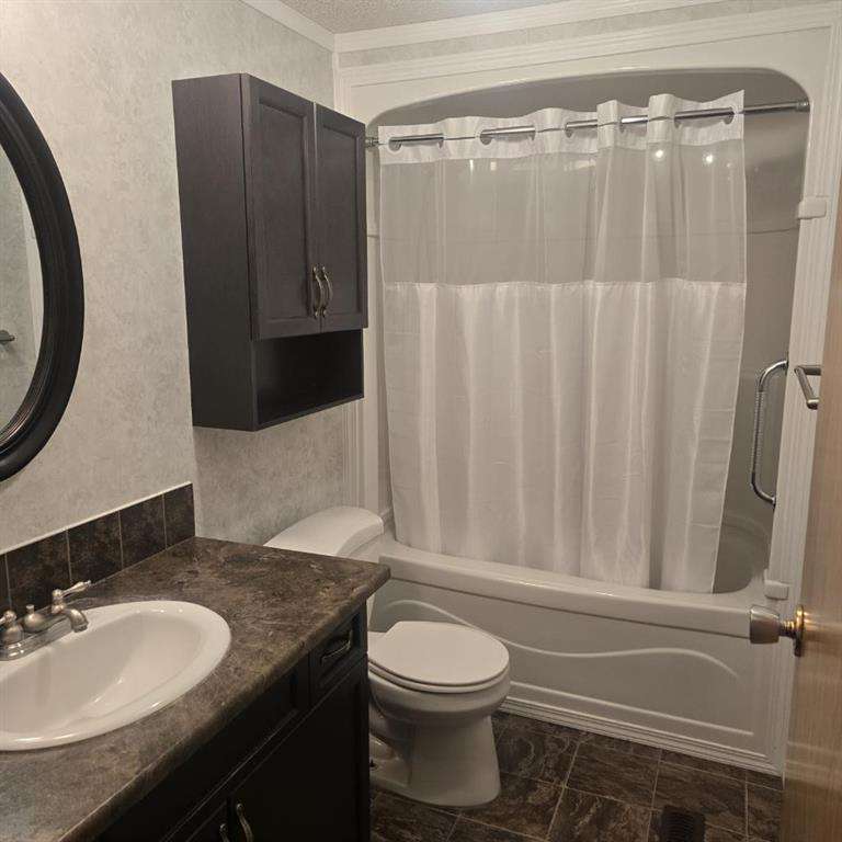 Welcome to this move in ready 1232 square foot mobile home on its own lot in the quiet Village of Lougheed. This home has 3 bedrooms, 2 bathrooms, open & bright kitchen/living area and laundry room. Outside has a nice sized fenced yard with a firepit, storage shed, covered deck and most importantly a OVERSIZED 26x32 insulated and sheeted garage! Extra features of this property include air conditioning, new roof, newer appliances, furnace and HWT! All you need to do is move in and unpack!