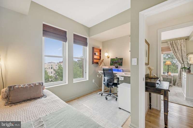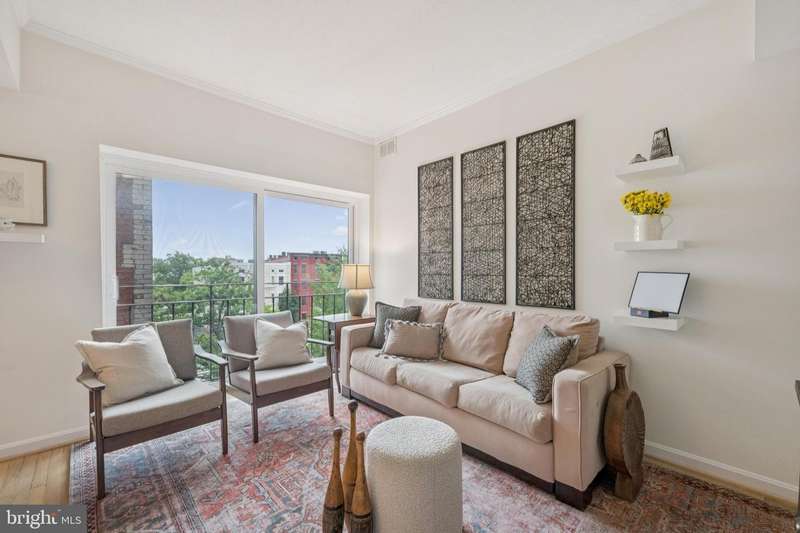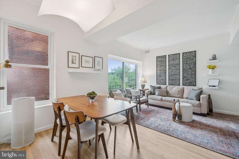 Light-filled Elegance and Historic Charm, this beautifully updated corner residence is perched on a quiet, tree-lined one-way street and offers sweeping leafy views with an abundance of natural light. Featuring two bedrooms and one bath, the home boasts soaring ceilings, all new windows, and a thoughtfully designed open layout. The pass-through kitchen is appointed with stainless steel appliances, granite countertops, and ample cabinetry-while the in-unit washer and dryer add everyday convenience. Built in 1918, The Carswell is a boutique condominium that masterfully blends historic character with welcoming enhancements like a front porch, landscaped gardens, and mature blooming trees. Residents enjoy unrivaled access to Kalorama, Adams Morgan, Dupont Circle, and U Street-and are just steps away from world-class dining, shopping, and entertainment. With Dupont Station just 0.6 miles away, the Metro is within easy reach. There's also options galore when it comes to recreation: Marie Reed Recreation Center, Rock Creek Park, the National Zoo, S Street Dog Park, and Meridian Hill Park are all just seconds away. Whether savoring the quiet charm of Vernon Street or the vibrant energy of 18th Street just around the corner, this residence offers the very best of city living in a truly timeless setting.