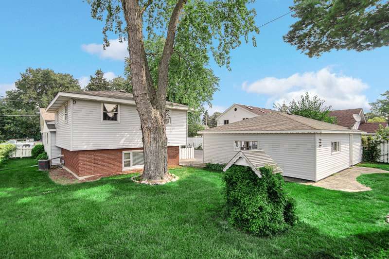This home has been well maintained and all of the major updates have been done. The roof on the home is 7 years old, the new vinyl siding on the home was put on last year to match the garage siding that was put on 7 years ago. The oversized 3.5 car garage had a new concrete flooring put in recently. Newer garage door openers with smart technology and newer garage doors were put in 7 years ago. The list of other items within the last 7 years are: remodeled main bath, refinished hardwood floors, repainted interior walls, newer dryer. Washing machine, stove/oven, refrigerator, and furnace are 1 year old. There are 2 bedrooms on the main level with a full bath and 2 bedroom upstairs (6 stairs) to the other 2 bedrooms with a full bath. There is a lower level rec room with a walkout to the backyard. The family room has a nice sized bay window overlooking the front yard and there is plenty of space to arrange your furniture. Very good sized family room and kitchen! This home sits on a good sized yard and it is fully fenced in. This yard is nicely landscaped and deep. This is unusual for the area to find a yard this big. Also, you are only about 2 miles away from the airport, minutes away from shopping and dining, and a short drive to the expressways. So many nice things to say about this location!