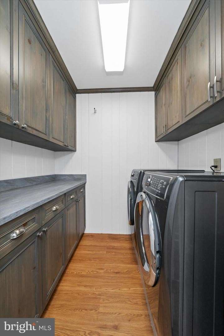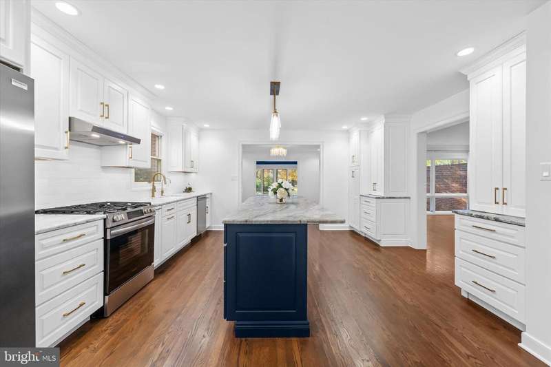 This 2-story twin home in secluded Barley Mill Courts is sure to amaze agents and buyers alike. Totally RE-imagined, RE-designed, RE-freshed, RE-done, RE-painted to offer the finest in refined living. From the moment you enter the new front door, you know you are someplace special. Newly added hardwood flooring greets you and flows throughout both floors of the home (all refinished). A convenient home office off of the 2 story foyer is the perfect work-from-home spot. Straight ahead is the spacious living room overlooking the patio and back yard. The focal point of this room is the fireplace with stunning floor-to-ceiling marble surround which was converted to propane gas with remote control. The chimney liner and cap are also new as is the non-flammable reinforcement behind the marble for extra safety. The hall powder room was totally redone with high-end cabinetry, new faucets, toilet, lights and marble vanity top. The star of the show is the new kitchen which was professionally redesigned and reconfigured. The room was opened and expanded into the dining room for added light. High-end Medallion white cabinetry with stunning contrasting blue cabinetry in the large island for barstool seating, leathered marble countertops, exceptional storage, stainless new appliances, double sinks, the list goes on! Add to that, the redone butler's pantry with additional storage to make entertaining easy. The charming dining room opens to a sunroom which can be used year-round. Don't miss all of the gorgeous new light fixtures and recessed lights throughout the home! Upstairs, you notice the large hallway with space for furniture and artwork. The hall bath was totally redone including reinforcement of the floor under the new tub. Kraftmaid cabinets, quartzite counters, and new sink & toilet. The upstairs laundry is so convenient. Two auxiliary bedrooms feature updated lighting, fresh paint, great closets. The Primary bedroom suite was totally redesigned, featuring a spectacular new bathroom and closet/dressing area. The bath features Kraftmaid cabinetry, quartzite counters, dual-entry glass shower door, 2 shower heads, heated towel warmer, all new plumbing and lighting. The custom closet has hanging storage, shoe shelving and drawer units, plus added electric. Truly a special space to retreat and relax! The basement provides extra storage as does the 2 car garage with shelving. Please see the Special Features sheet for more details of this very special home. Convenient location, so close to dining, shopping, and major access roads.