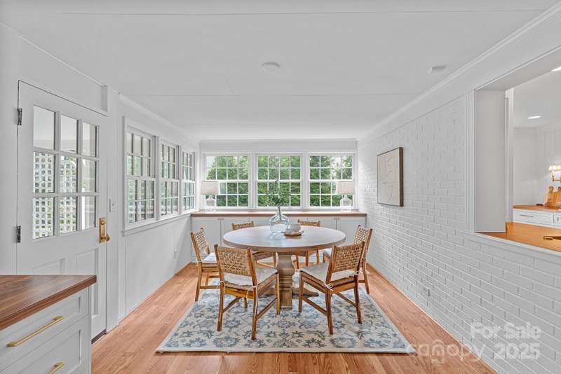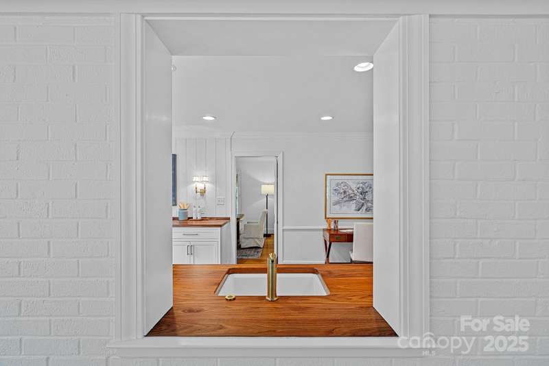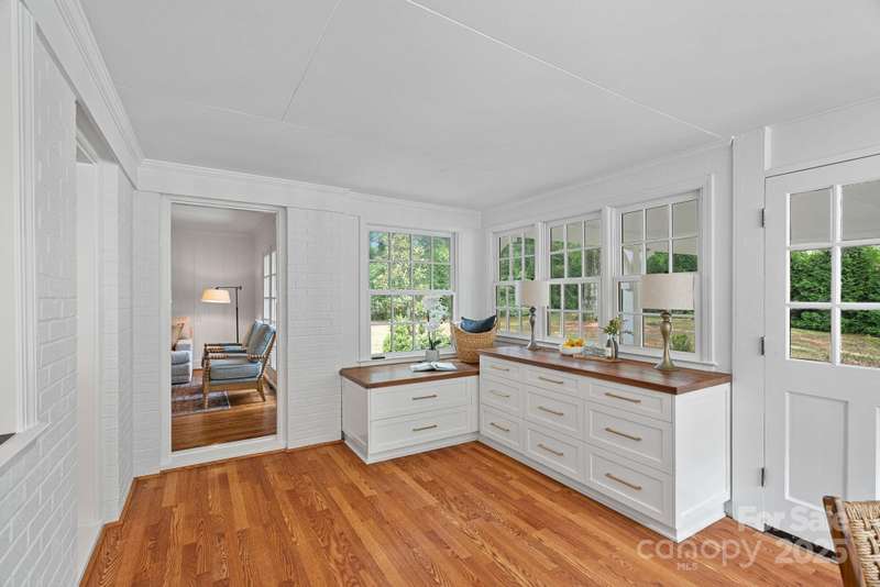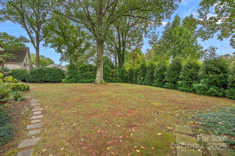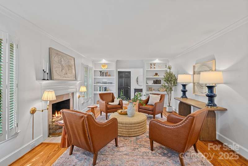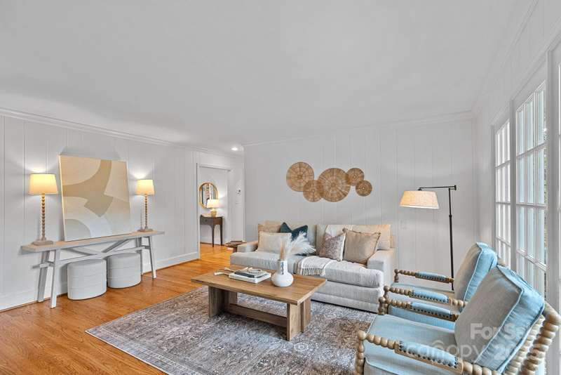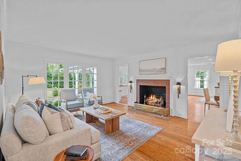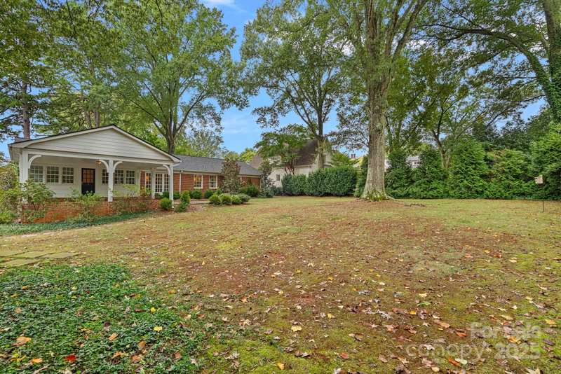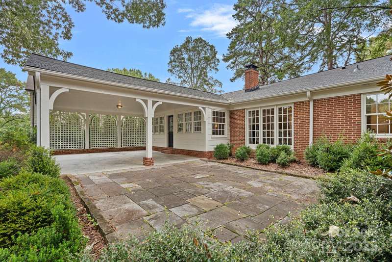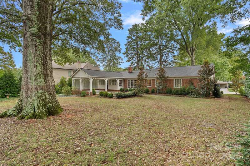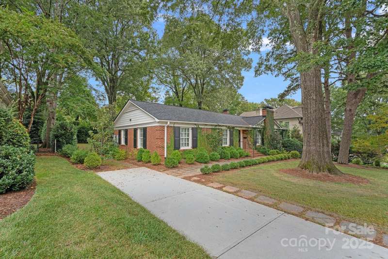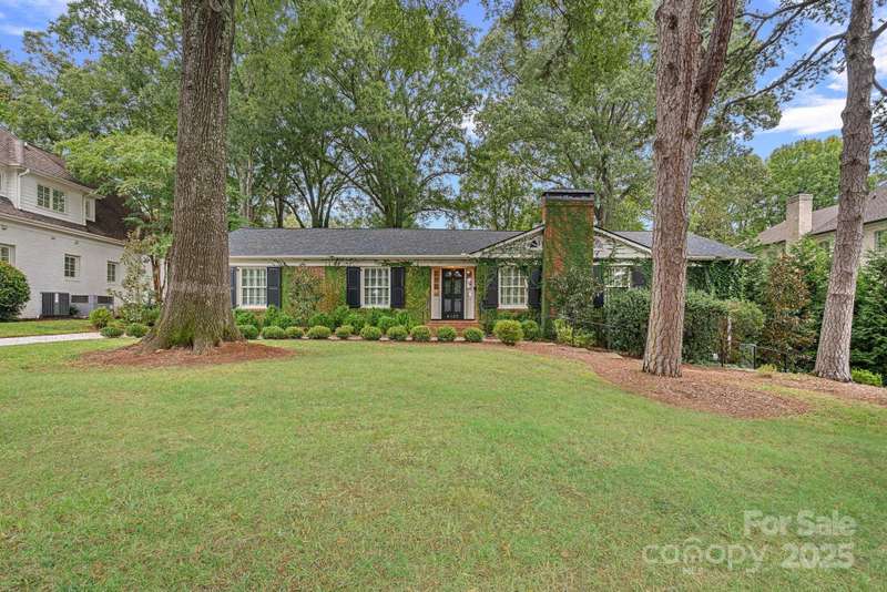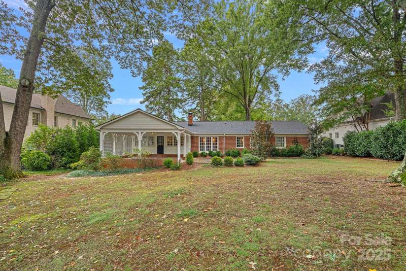 Timeless elegance and classic charm define this beautifully updated 1954 ranch nestled in the heart of Old Cotswold neighborhood. Thoughtfully designed for both comfort and style, this 3-bedroom, 2 full-bath home was redesigned by the renowned architect Don Duffy and features a tastefully renovated kitchen with warm butcher block counters, custom cabinetry and elegant fixtures. The charming sunroom offers additional custom cabinetry for extra storage needs and an abundance of windows, flooding the room with natural light. The living room exudes sophistication with custom built-ins accented by soft recessed lighting and a cozy gas fireplace, while a second fireplace in the den adds additional warmth and character. The beautifully updated baths complement the home's enduring style, while the very private, landscaped backyard provides an ideal retreat for outdoor enjoyment. The covered rear porch, formerly a 2-car carport, along with the beautiful stone patio is a wonderful area for outdoor living. Additional highlights include a whole-house gas generator which offers peace of mind and everyday convenience. Perfectly situated near premier dining, shopping, and Uptown Charlotte, this quintessential home blends classic design with timeless modern comforts in a most sought-after neighborhood.