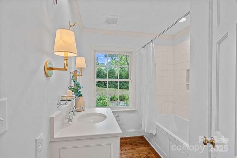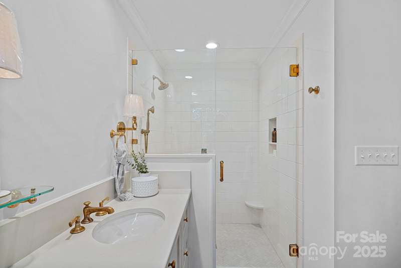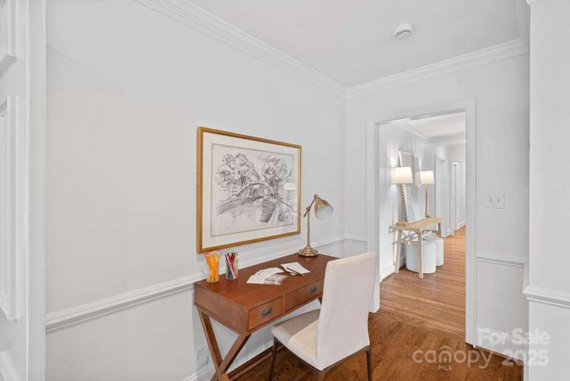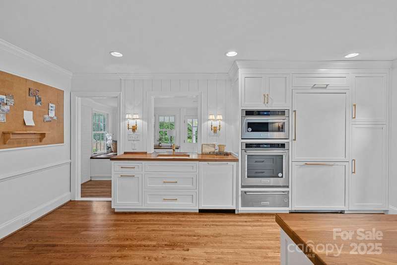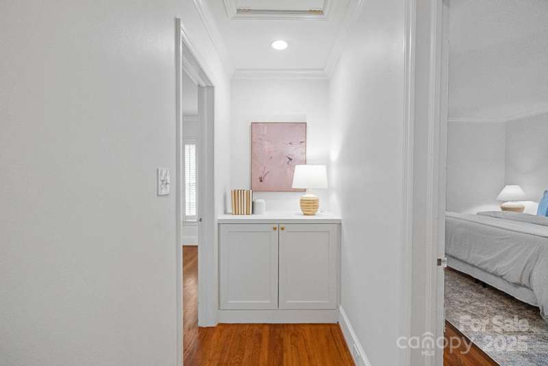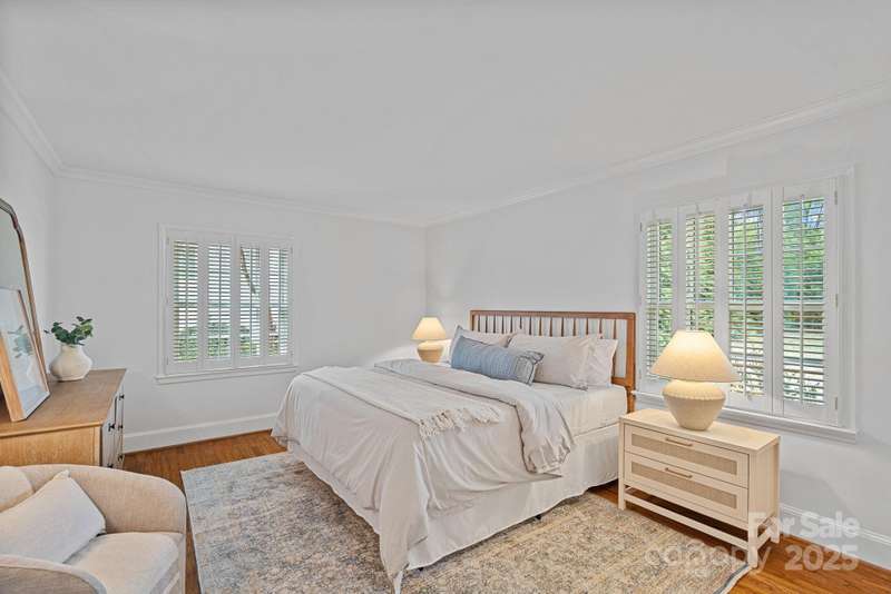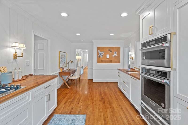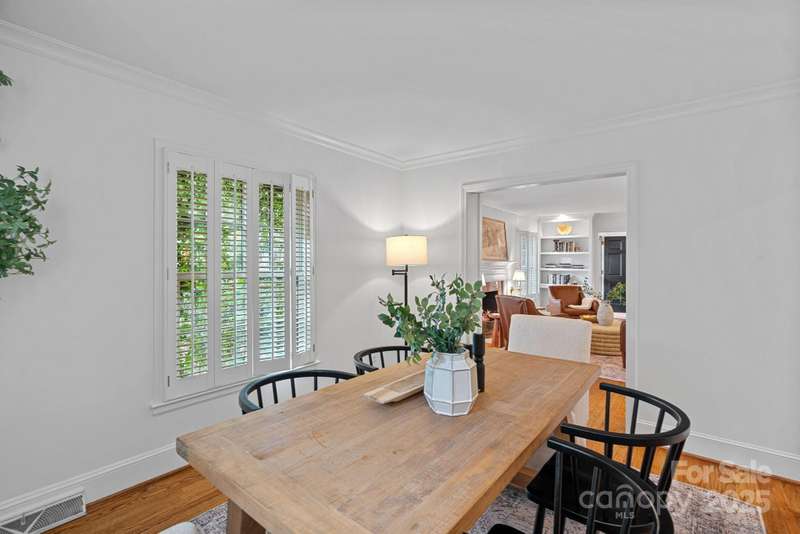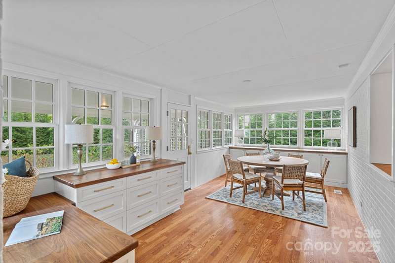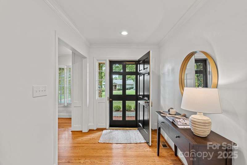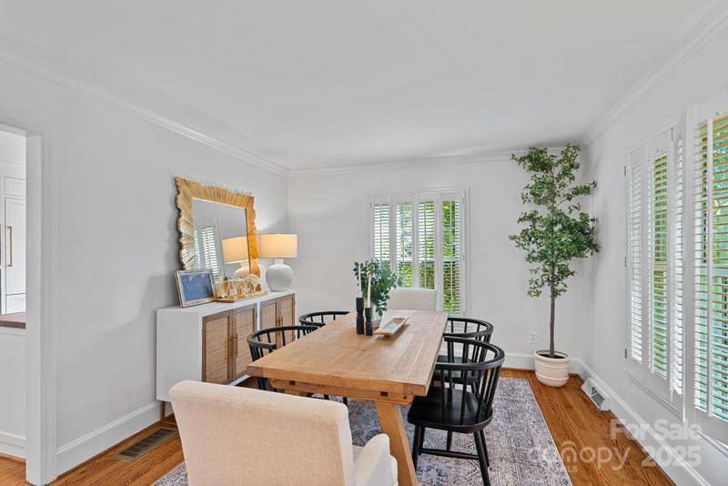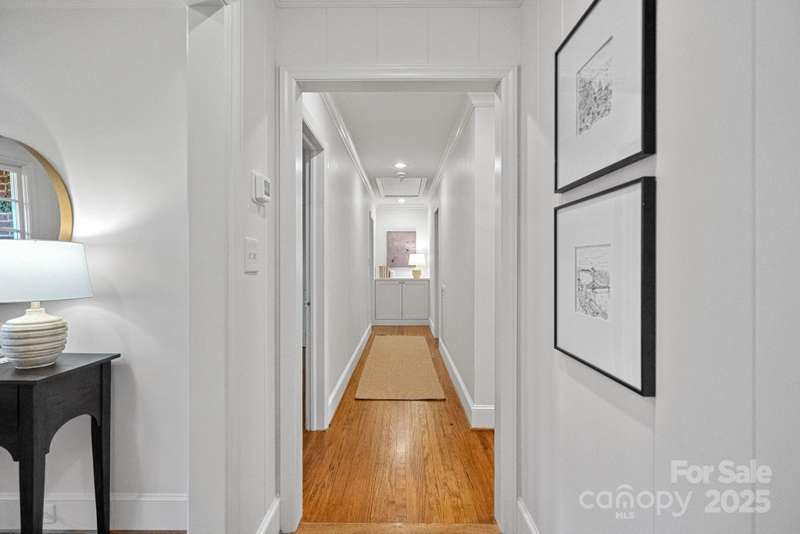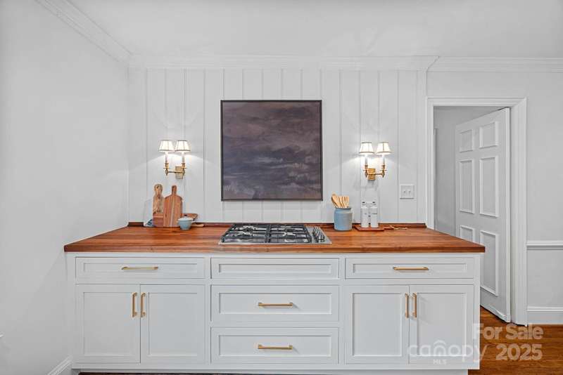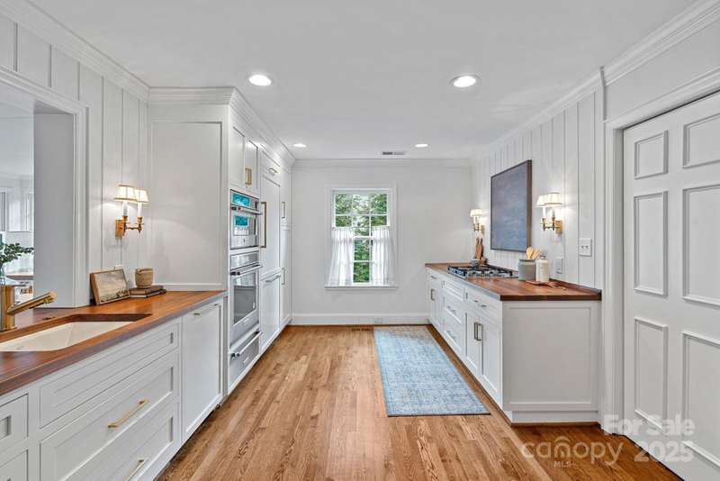 Timeless elegance and classic charm define this beautifully updated 1954 ranch nestled in the heart of Old Cotswold neighborhood. Thoughtfully designed for both comfort and style, this 3-bedroom, 2 full-bath home was redesigned by the renowned architect Don Duffy and features a tastefully renovated kitchen with warm butcher block counters, custom cabinetry and elegant fixtures. The charming sunroom offers additional custom cabinetry for extra storage needs and an abundance of windows, flooding the room with natural light. The living room exudes sophistication with custom built-ins accented by soft recessed lighting and a cozy gas fireplace, while a second fireplace in the den adds additional warmth and character. The beautifully updated baths complement the home's enduring style, while the very private, landscaped backyard provides an ideal retreat for outdoor enjoyment. The covered rear porch, formerly a 2-car carport, along with the beautiful stone patio is a wonderful area for outdoor living. Additional highlights include a whole-house gas generator which offers peace of mind and everyday convenience. Perfectly situated near premier dining, shopping, and Uptown Charlotte, this quintessential home blends classic design with timeless modern comforts in a most sought-after neighborhood.