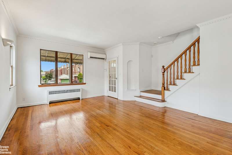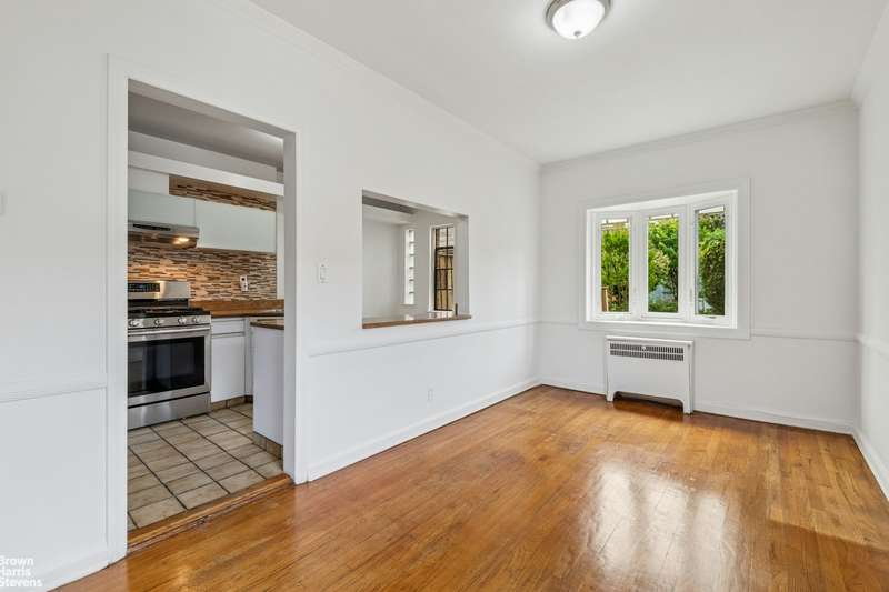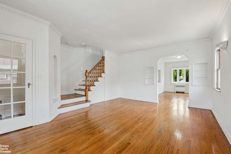 Coveted Middle Village corner side hall Colonial with driveway and one-car garage with direct access to basement. Extra-large private yard with deck. Imagine watching the world go by on the lovely front porch. Entry foyer with French door leads to sunlit living room featuring bay window, hardwood floors, crown moldings, and original details. Formal dining room with passthrough to kitchen is sure to be a place for wonderful meals and memories! Updated kitchen leads to deck and very large yard. The second floor has three perfect bedrooms, a windowed full bath with tub/shower and hardwood floors. Huge basement features storage, windowed guest quarters or home office, windowed bath with stall shower, access to garage, laundry room and yard. Bring your touch to this well-cared for home.