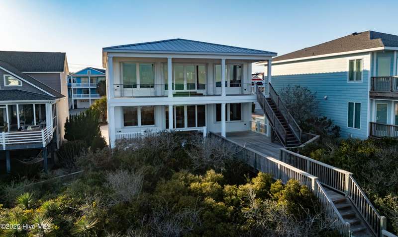 Introducing 410 Fort Fisher Blvd N, an exceptional oceanfront home in Kure Beach where thoughtful design meets superior craftsmanship. After the original structure was torn down, this home was completely rebuilt from the ground up in 2018 by Greg Stier. The result is a meticulously designed residence that blends coastal elegance, durability, and functionalityoffering uninterrupted ocean views and top-tier structural integrity.Set back from the road, this home provides an added sense of privacy and tranquilityan uncommon feature among oceanfront properties. Additionally, the property benefits from the natural protection of a secondary dune, enhancing its resilience against coastal elements. Further ensuring peace of mind, the home is safeguarded by impact-resistant windows and hurricane shutters, offering an extra layer of protection.Step inside and be immediately greeted with breathtaking views of the Atlantic Ocean. The grand Palladian window in the foyer floods the space with natural light, creating an inviting, airy ambiance. Throughout the home, beautiful maple hardwood floors, intricate molding, and ever-present ocean views reinforce the coastal charm.Every detail throughout this remarkable home reflects a commitment to beauty, efficiency, and longevity. Built with 2X6 construction, engineered ceilings for soundproofing, and reinforced steel rods securing the roof, this home is as strong as it is timeless. In addition, two high-efficiency, ultra-quiet HVAC systems provide year-round comfort, while wide doorways and an elevator offer age-in-place living.With two independent living spacesone on each levelthis home is perfect for entertaining, multi-generational living, or accommodating guests. Located in the quiet, close-knit town of Kure Beachknown for its small-town charm and friendly neighborsthis is more than a home, it is a peaceful coastal retreat waiting for its new owner.