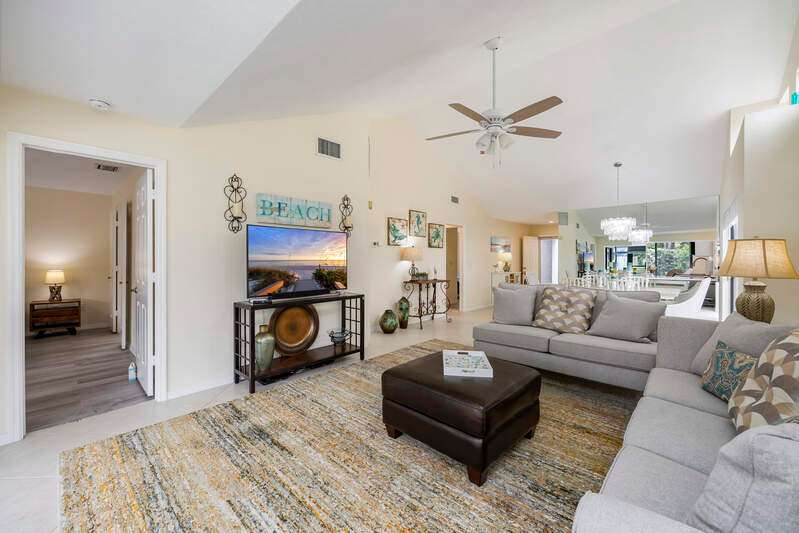 Welcome to this beautifully updated 2-bedroom, 2-bath attached villa in the highly sought-after gated community of Beachwalk. Just a short stroll or bike ride to Vanderbilt Beach and within walking distance to the vibrant dining, shopping, and entertainment of Mercato, this home offers an unbeatable location! The split floorplan provides privacy and comfort, while the newly remodeled kitchen features stainless steel appliances, quartz countertops, and a eat-in kitchen overlooking one of the two outdoor seating areas. Both bathrooms have been tastefully updated, and the enclosed lanai under air adds valuable extra living space with an abundance of windows overlooking the lushly landscaped backyard. Enjoy resort-style amenities including a 24-hour gate attendant, community pool and spa, six tennis courts, bocce, exercise room, and onsite property management. This is the perfect opportunity to enjoy the Naples lifestyle in a prime coastal location.