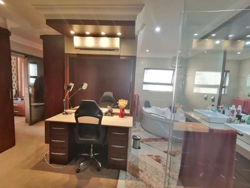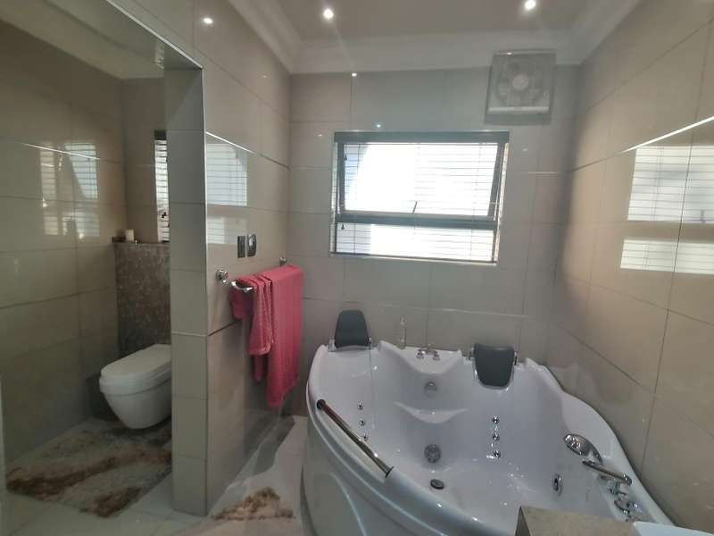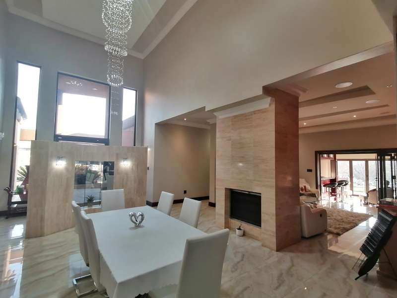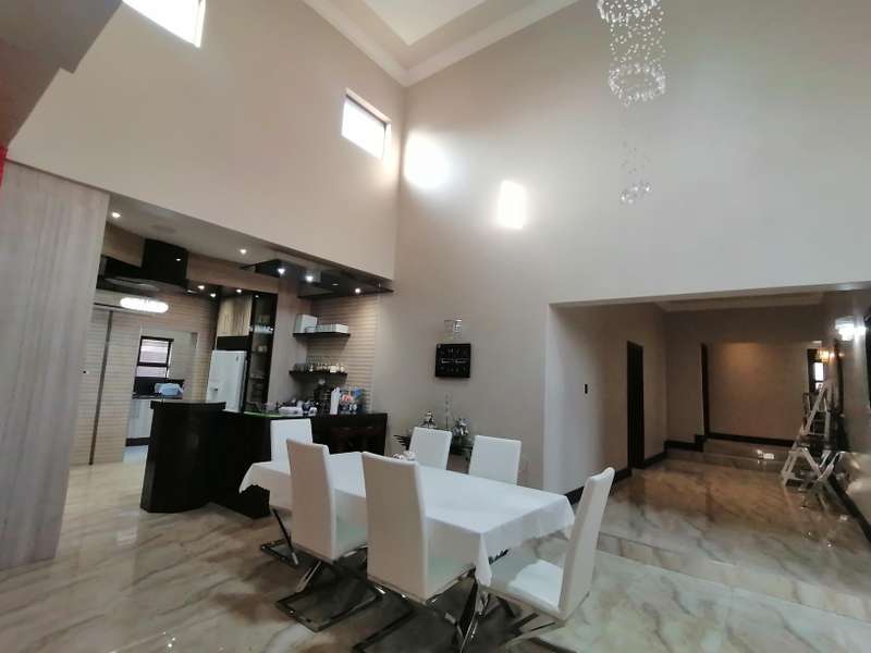 ****DUAL MANDATE****** The price is negotiable This beautiful modern house is priced to sell. A view to this property will convince you to make an offer. It includes 3.5 bedrooms, 3.5 bathrooms, 4 garages, a study with his own entrance, staff quarters, and an entertainment area. High-end appliances are featured in the kitchen. In addition to the Kitchen there's space for your side-by-side fridge, a pantry and scullery are included as well as a breakfast nook. Direct access from the lounge to the bar and patio area allows for lots of fresh air and natural light. The bedrooms are modern and spacious. The main bedroom is spacious, has a lot of wardrobe spaces, a dressing table, a jacuzzi, and an entertainment system. There is a lot of natural light in the main bedroom. The property has high ceilings, chandeliers, staff quarters, air conditioning, sound system throughout, generator ready, fibre ready, A Bar and so much more. Estate living is epitomized by Blue Valley Golf Estate and country estate . Along with an 18-hole Gary Player-designed golf course, the estate includes tennis courts, a squash court, a soccer field with a cricket pitch, and a basketball court for sports enthusiasts. Throughout the estate are several park areas that are perfect for family walks and runs as well as enjoying the beauty of the golf course. An incredible menu is available at Taste Restaurant in the clubhouse. Conference facilities and a beauty spa are also available. To and from the gate, a complimentary shuttle service is available. Easy access to Samarand Rd which joins the N1 highway, close to Blue valley mall, fuel stations, Jacaranda college & Pre-primary, Coccolino's early childhood center, Uitsig high school, Medi clinic, International Airport, and many more. For a chance to view this property, contact me today