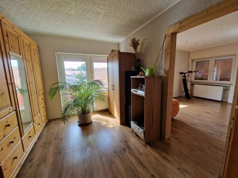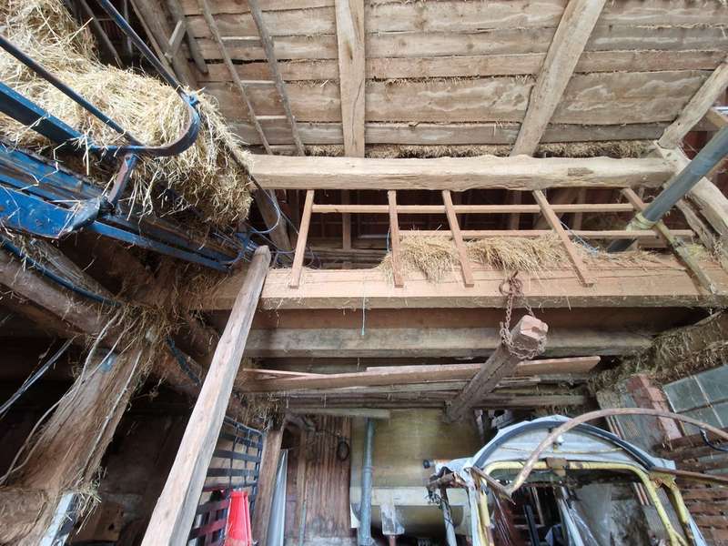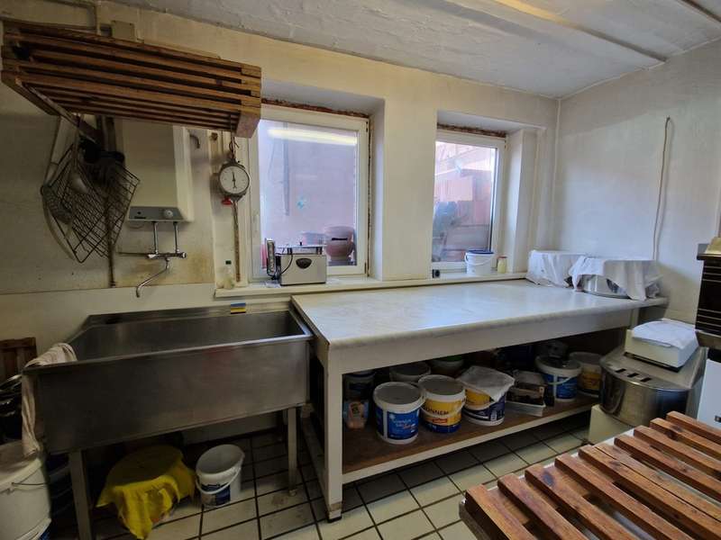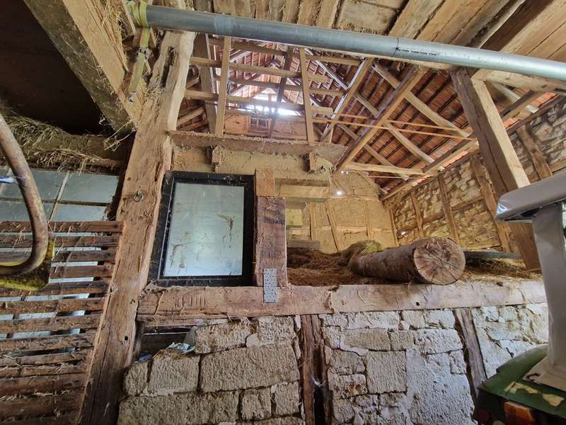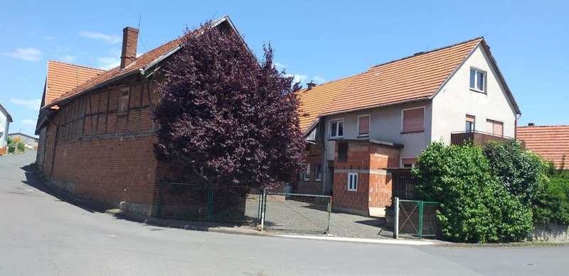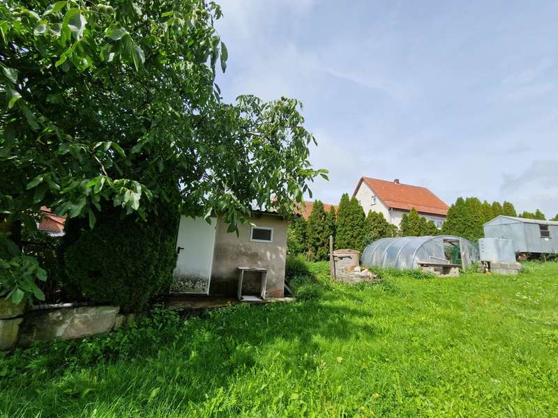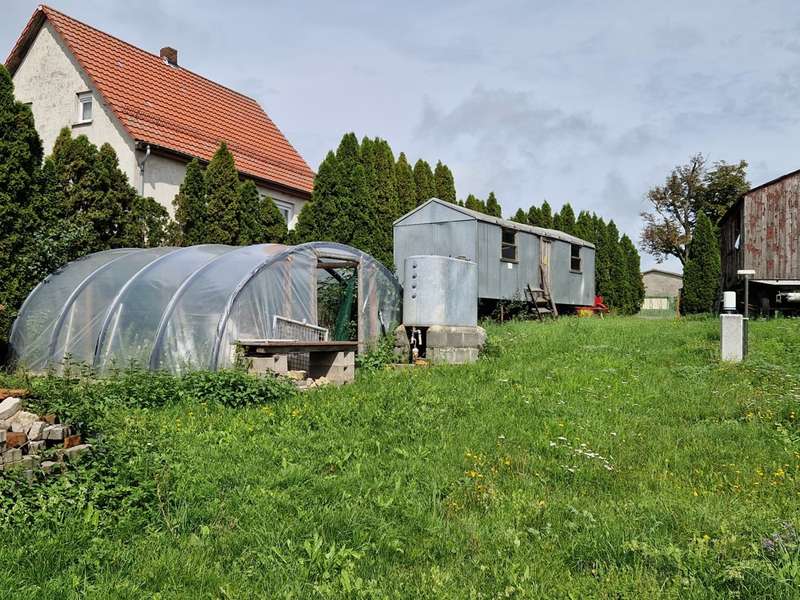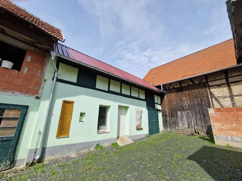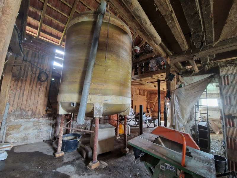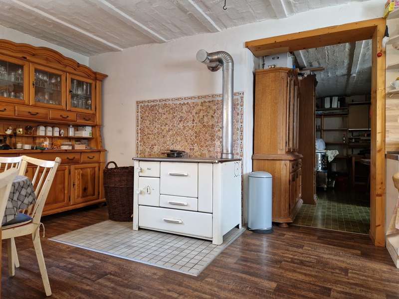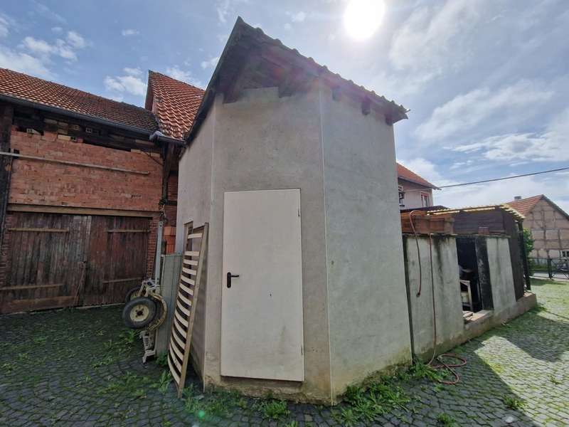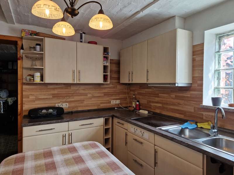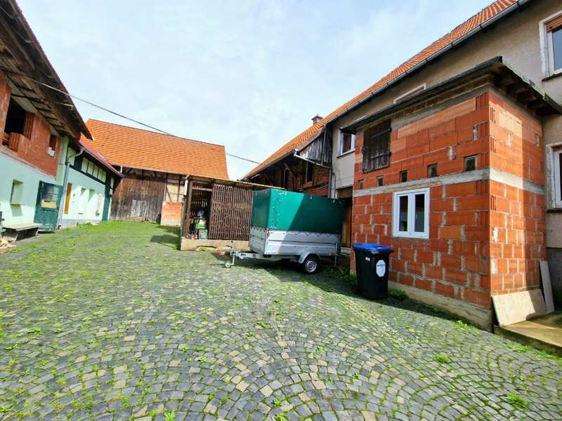 Let your self-catering heart beat faster. A fully furnished farmhouse is for sale, which offers you a wide range of different work opportunities. The house, built in 1968, has a total of 8 rooms, 4 of which can be used as bedrooms. A bathroom with guest WC and a further bathroom in the shell complete the second floor. Two of the bedrooms have direct access to the balcony. On the first floor there is a spacious living room with access to the terrace and eat-in kitchen. You also have the opportunity to bake your own delicious bread in the existing bakery. The heating system with solid fuel burner provides the necessary heat and hot water. The property has three chimneys so that further stoves can be connected. A large smoking cabinet, a Viessmann cold store and sufficient storage space are available in the cellar. To the right of the house entrance there is a shed for various storage facilities and a private well. There are also two brick-built "cottages" in the courtyard, which were used as storage facilities and for the mill. There is also a manure and cesspit in the courtyard. The courtyard is surrounded by numerous farm buildings. Here, craftsmen could work with wood or metal. A fully tiled room with water and three-phase connection can be used for the production of numerous foodstuffs. Two large barns with direct access to the courtyard are also available. Stables for animal husbandry (e.g. cattle, pigs, sheep), two silos and conveyor belts complete this accommodation option. The spacious garden offers plenty of room for keeping chickens and ducks, as well as for growing fruit and vegetables. We also offer additional plots of land with fruit trees, arable land and woodland to ensure supply and marketing. Realize your dream of independence and be inspired by the multitude of possibilities. Energy certificate is in preparation