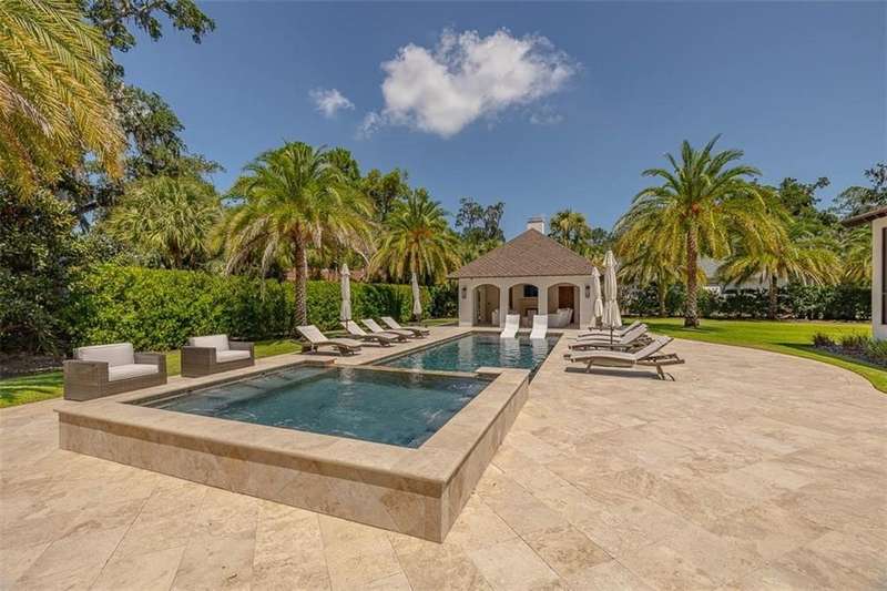 Welcome to 309 Hawkins Island Drive in the exclusive, gated community of Hawkins Island on St. Simons Island. This Addison Mizner inspired home is an entertainer's delight. It boasts four bedrooms, five baths and on half bath and sits on approximately .72 acres. The home has had some extensive renovations and upgrades. The chef's kitchen features high end appliances and finishes and is open to the living room with soaring two story ceilings to bring in the abundant natural light. The primary suite is on the first floor and the primary bath features a large, tiled shower, a soaking tub and large walk-in closet. The primary suite also has a screened in porch that overlooks the gorgeous back yard. There is an office on the main floor with pecky cypress and built-ins for added convenience, and an extra bedroom and full bath. Upstairs you will find two additional bedrooms and bathrooms and another covered porch, perfect for those guests that want some quiet time. The backyard is an absolute dream! The pool and spa are the main focal point. Whether you want to dine alfresco or relax under the covered lanai with a fireplace this home has it all. And for additional space...there is a pool house with an additional daybed, full bath, and kitchenette. The homeowner has taken great care and made many upgrades such as all new appliances; new landscaping, remodeled kitchen and installed a backup power generator. A list of all the upgrades will be provided. Make your appointment to come tour this beautiful home today.