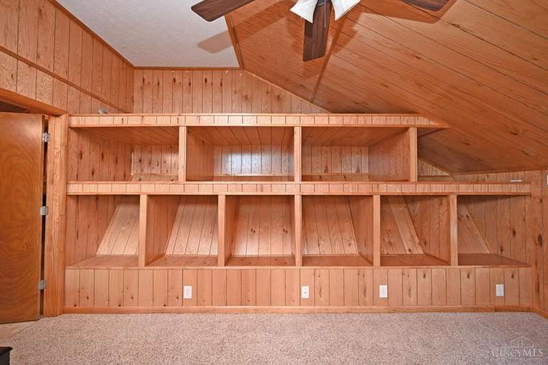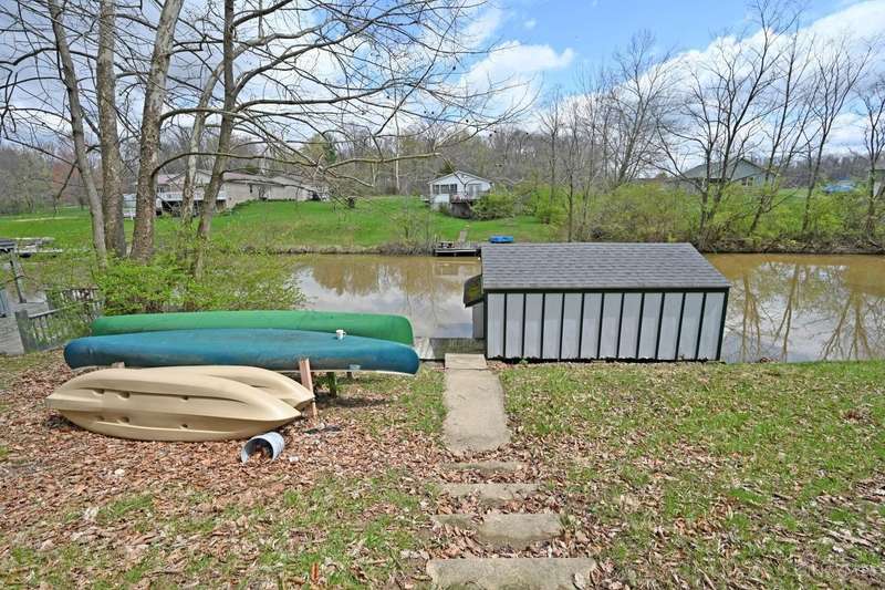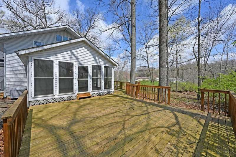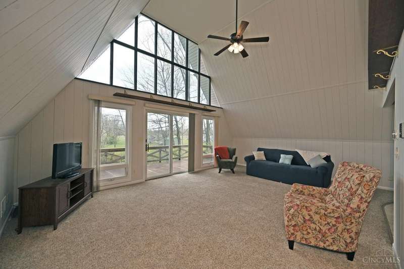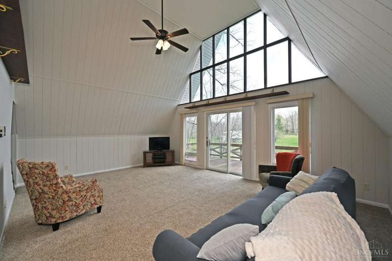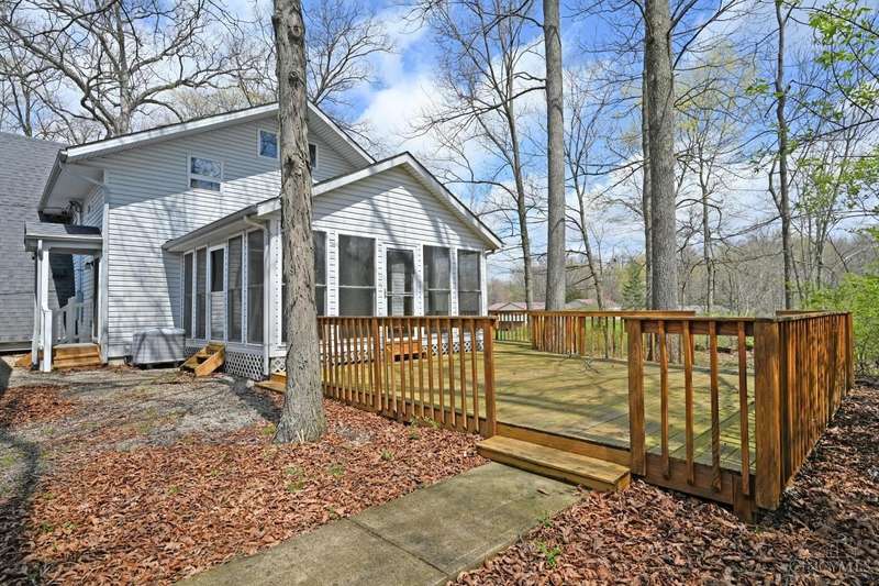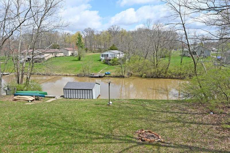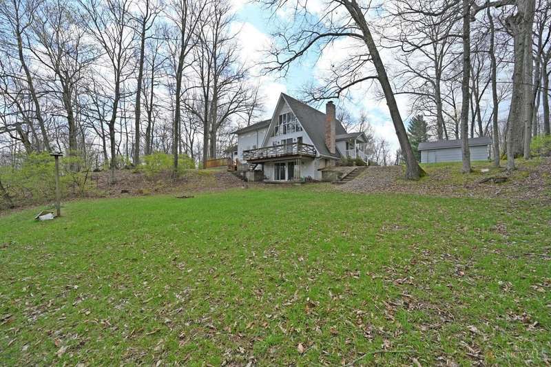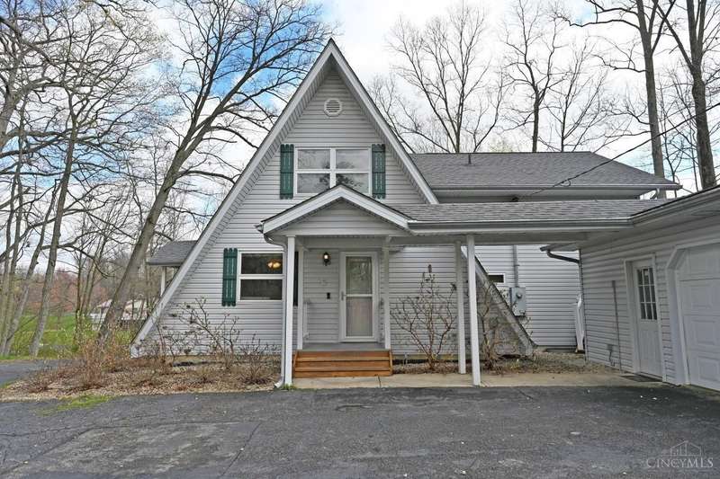 Not your typical A-frame, this home boasts over 3700 Square ft. Waterfront home on a quiet cove. House sits on 2 lakefront lots almost 1 acre with 193' of water frontage on a private wooded lot. Perfect house for hosting large groups or multiple families, offers 6 different areas for bedrooms. 5 car garage spaces for all your storage and recreational needs. Screened-in porch, multi-level decks and covered patio offers ton of space for outdoor entertaining.