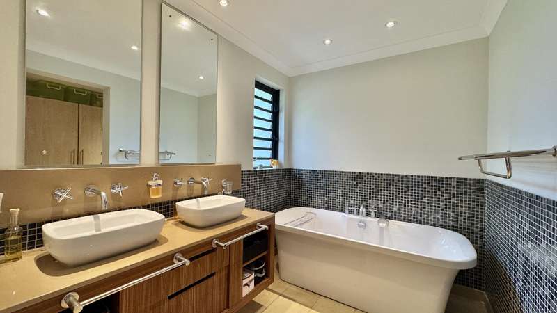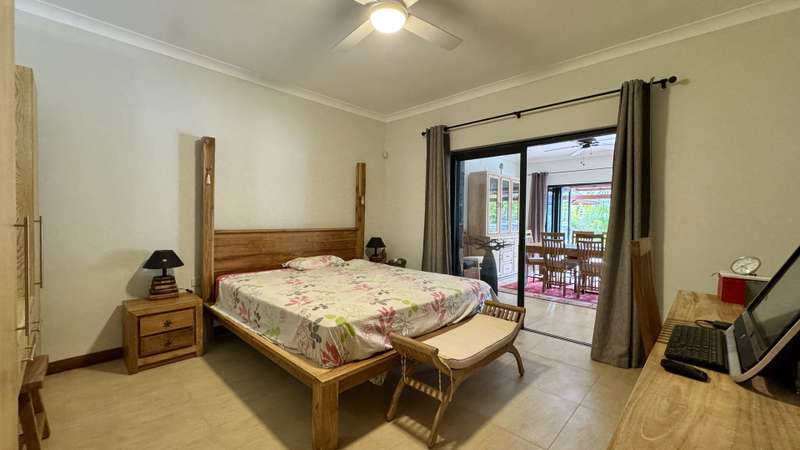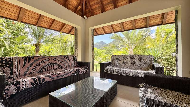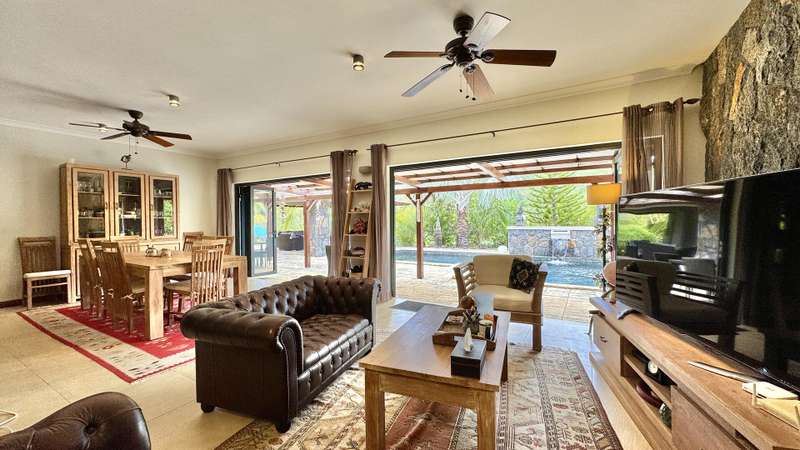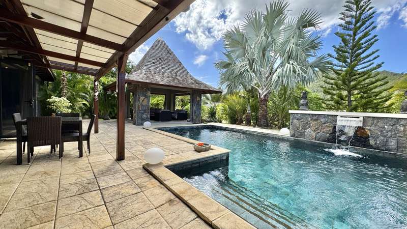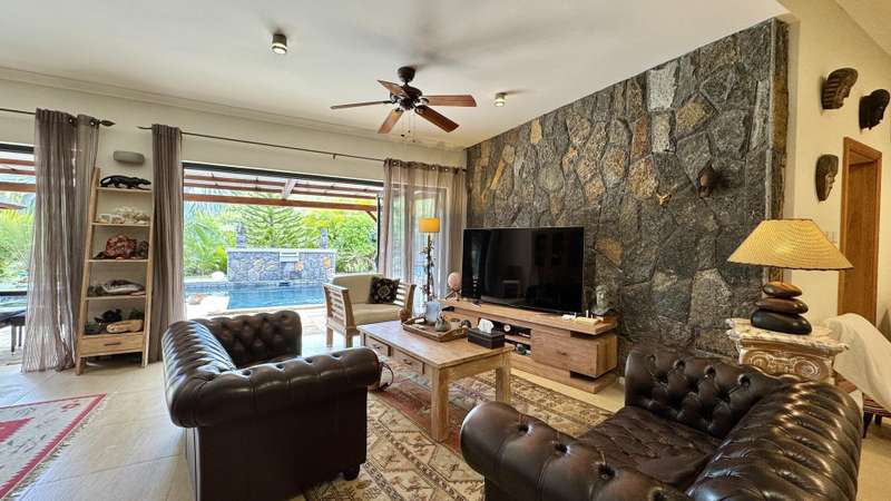 Nestled within a secure gated estate bordering the Black River Gorges, this 4-bedroom, 3-bathroom villa, presents an exceptional opportunity to embrace a harmonious blend of natural tranquility and modern convenience. The property benefits from a lush, natural environment, while being ideally positioned between the burgeoning Tamarin Smart City, with its international infrastructure and amenities, and the iconic Le Morne Brabant, renowned for its azure lagoon, hiking trails, and water sports. This villa offers an enviable lifestyle, situated within walking distance of the Black River Gorges and a short bike ride from La Balise Marina, Fit Life Sports Centre, Nomad Restaurant, a day-care facility, and the Ruisseau Creole Shopping Centre. Spanning nearly 360m² of habitable space, the villa exudes a warm and inviting atmosphere. It features three en-suite bedrooms, including a main suite with a walk-in closet and a luxurious bathroom with double sinks and a bathtub. The two other en-suite bedrooms provide direct access to the outdoors: one to a private yard and the other to the expansive pool area. An additional bedroom, which can also serve as an office or playroom, opens onto the verdant tropical exterior. The open-plan kitchen, complete with a large kitchen island and a lava stone bar counter, seamlessly integrates with a practical back laundry room, which in turn leads to a covered kitchen yard. The spacious dining and TV lounge, featuring stone accent walls, extends onto a pergola-covered terrace and the magnificent slate L-shaped magnesium pool (heated), complete with a water feature and a Balinese-inspired kiosk. Set on a generous plot of over 1000m², this particular villa enjoys direct access to a vast common garden adorned with mature trees and stunning views of La Tourelle Mountain. The property also offers ample parking, a single garage with electric shutters, a generous storage room, two water tanks, and an automatic generator. This villa is an ideal investment for those seeking a home that allows for personalized touches while providing a peaceful, natural environment, all within easy reach of the region's amenities. Accessible to foreign investors, this property offers permanent residency upon purchase. Contact DIANE WATKINS - Property Consult for a private viewing!