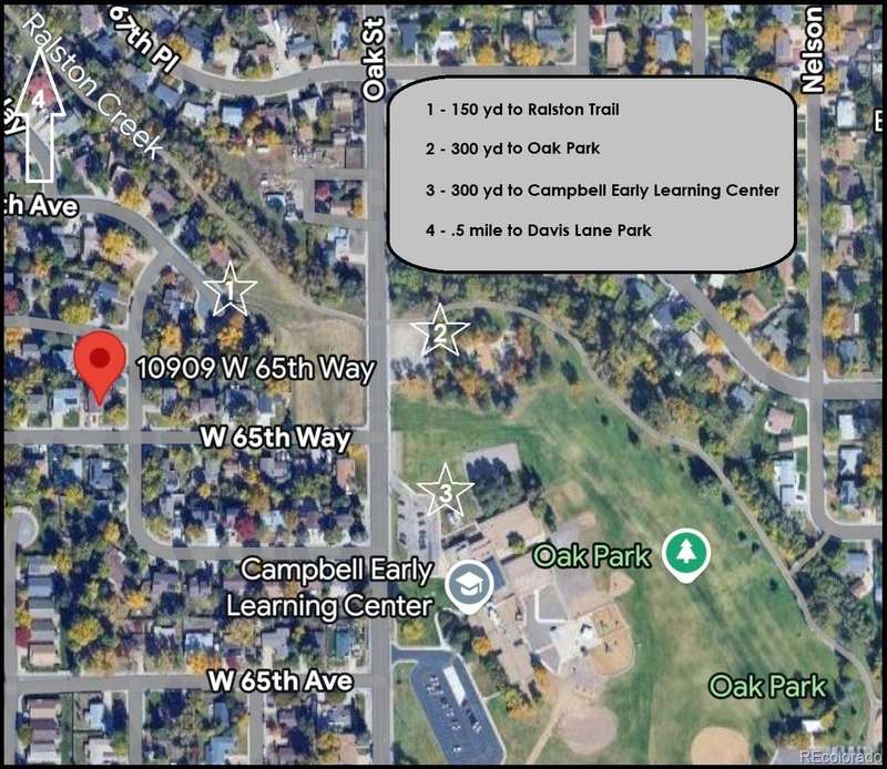 Welcome home- 10909 W 65th Way Appraised for $715K in August 2025! Remodeled Arvada Gem is a RARE find. This beautifully updated 4-bedroom, 3-bathroom home in southwest Arvada blends timeless character with top-to-bottom modern upgrades. With over $100,000 in renovations completed in 2021, youll enjoy a move-in ready space thats stylish, functional, and built for living. Interior Highlights: Fully remodeled kitchen & bathrooms (2021), Rich bamboo flooring throughout upper levels, Bright, open-concept main floor with bay window, Expanded kitchen with: Stainless-steel appliances & gas range, Custom cabinetry w/ pull-outs & 2 lazy Susans, Sleek backsplash & generous prep space. The dining area opens to a brand-new deck Primary suite w/ updated bath + two spacious bedrooms upstairs, Tempered glass closet doors. Lower-Level Perks: Cozy family room with custom gas fireplace 4th bedroom & 3rd 1/2 bath, Access to second private deck oasis. Bonus Finished Walkout Basement: Perfect for office, gym, or playroom, laundry area, storage and Sliding glass doors leading to a 3rd patio space. Exterior & Lot Features: Oversized fully fenced corner lot maple tree & raised garden beds, 3 outdoor entertaining areas, Dedicated RV/toy parking on NE side of home, new concrete front sidewalk, Sprinkler system included. Location, Location, Location: Quiet, friendly block with low turnover, Steps from Ralston Valley Park, Oak Park, and Ralston Creek Trail, Easy access to Olde Town Arvada, Colorado Tap House, Golden, Red Rocks & Downtown Denver. Recent Upgrades: Full remodel (2021) $100K+, Brand-new deck (2025) Custom gas fireplace (2022) New AC unit $5K, New electrical panel (2022), New concrete sidewalk (2025) Dont Miss Out- This home checks all the boxesspace, style, function, and location. Its truly move-in ready and packed with thoughtful upgrades. No HOA, No Metro district tax & Low taxes.