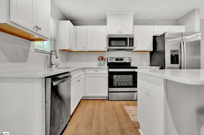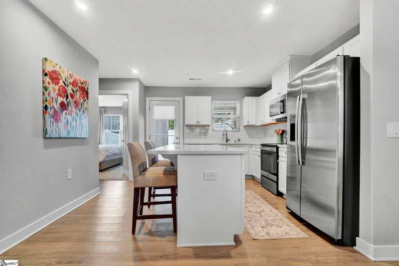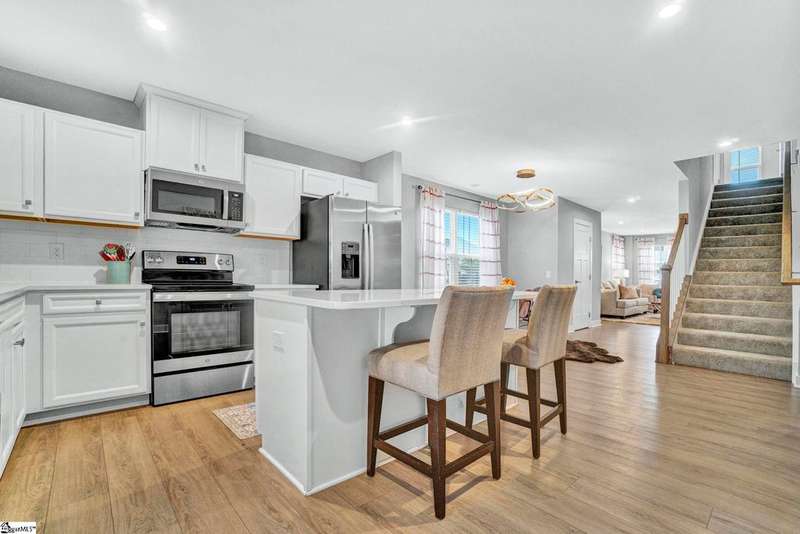 Discover this beautifully appointed former model home in the sought-after Berkeley community, where resort-style living meets everyday comfort. This 3-bedroom, 2.5-bath, end unit, townhome features the original floor plan, offering a spacious and open layout with thoughtful upgrades throughout. The oversized kitchen is a true standout, boasting an expanded layout with a rare picture window above the sink?filling the space with natural light. Enjoy upgraded cabinetry, premium countertops, and a deluxe appliance package that elevate both style and function. The main-level primary suite offers privacy and convenience, complete with a luxurious full tile shower and modern finishes. Upstairs, two additional bedrooms and full bathroom provide flexible space for guests, family, or a home office. Additional highlights include a fully finished garage, hardwired security system, and a generous fenced-in backyard?perfect for relaxing or entertaining. Located in the vibrant Berkeley community, residents enjoy access to top-tier amenities, just look at that clubhouse and pool! With the HOA taking care of all of your lawn maintenance (inside and outside of your fence), you can take advantage of pool time at every chance! Don't miss out on owning this upgraded and thoughtfully designed townhome in one of the area's most desirable communities!