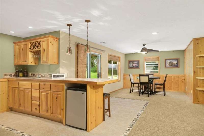 Experience the WOW the moment you drive down the tree-lined entrance of this private retreat on motorized Lake Thompson. Set on 4.81 acres, this 5-bedroom, 4-bath home offers a perfect blend of luxury, space, and serenity. The kitchen has been beautifully updated with heated floors, under-cabinet outlets, oversized granite island, and modern cabinetry. Enjoy breathtaking lake views from three Trex decks and two patios—ideal for relaxing or entertaining. The owner's suite is a true retreat with stunning new flooring, a soaking tub, granite counters, and a spa-like frameless shower. Updates include a new roof (2023) and siding (2018). Car lovers will appreciate the 6-car garage. This is lake living at its finest—private, peaceful, and perfectly updated.