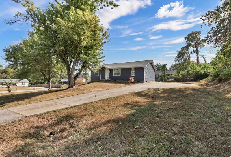 Charming ranch, renovated with high end touches and set on large corner lot of dead-end street! Spacious, open living, dining and kitchen with cathedral ceiling. Primary bedroom suite features walk-in tiled, pebble-base shower. Hall bath renovated to include freestanding soaking tub eith hand sprayer. Expanded deck overlooks back yard with firepit. Beautiful wood floors and tile, NO CARPET! Convenient to Fort Campbell