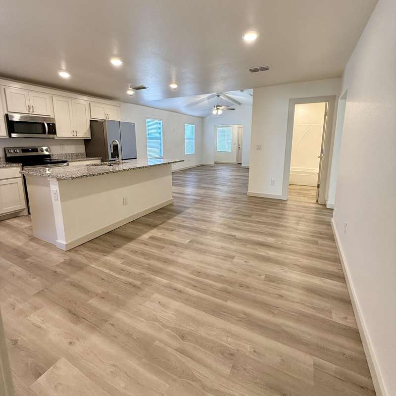 Charming 3 Bedroom Home Located In Elm Meadows! Located across the street from neighborhood park & minutes from I-27 for quick access around town. This home features a size-able entry way with an open concept living, vinyl flooring throughout, and recessed lighting. Spacious kitchen with large island, granite countertops and all stainless steel appliances. Bathrooms feature beautiful black modern finishes and large master walk in shower and closet. No maintenance landscaping with Astro turf backyard. This home is a must see! Schools: Hodges Elementary, Dunbar Jr. High, Estacado High School Roommates Considered (3 @ $1600 deposit); Pets Considered (2 @ $500 pet deposit per pet)