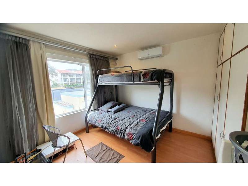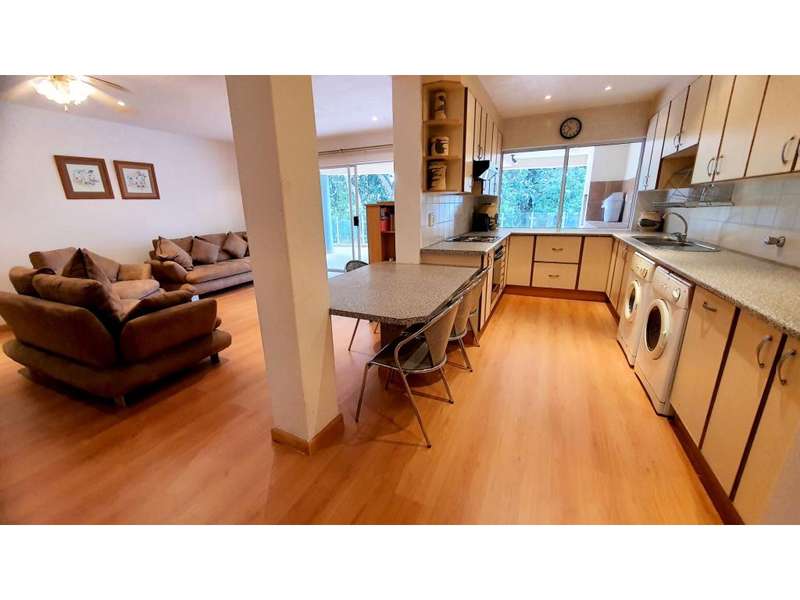 This modern complex has direct access to St Michael?ÇÖs main beach. The open plan lounge, dining room is spacious with sliding doors that take you out onto the large covered patio with its built in braai. The modern kitchen is well designed with breakfast counter, down lighters and a large sliding window that opens onto the patio. Two of the bedrooms are air conditioned. The main bedroom is en-suite and has sliding doors that gives you direct access to the patio. This apartment is spacious and is in a small complex with only six units. Each unit has its own lock up garage. The complex has a swimming pool, good security and is well managed. If you are looking for something on the beach, then this needs to be on your viewing list.