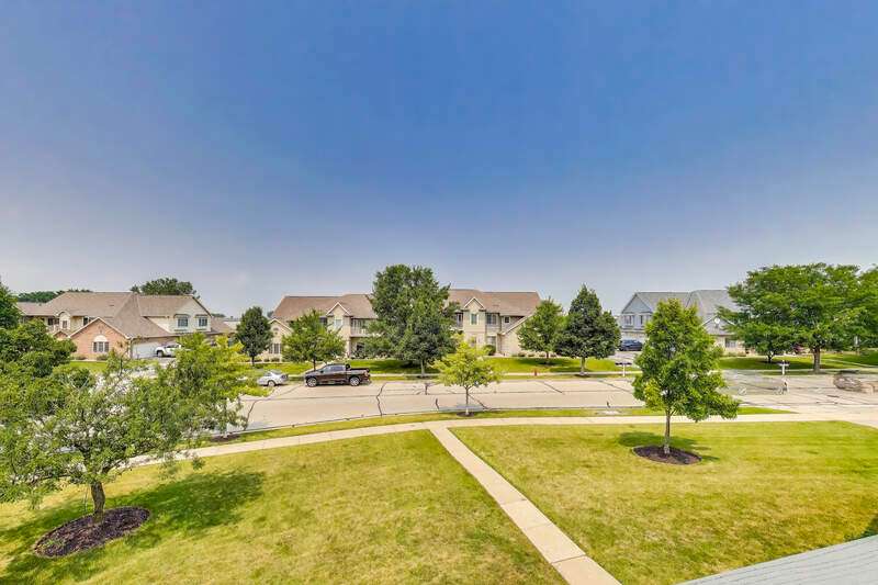 Bright and spacious 3-bed, 2-bath upper unit end condo, just steps from the YMCA and close proximity to Indian Trail HS & Academy and Mahone Middle School. Many features and updates including: Soaring vaulted ceilings and abundant natural light create an inviting atmosphere throughout the home. New appliances, including new refrigerator (2023), new dishwasher (2024), new microwave (2025), and a sleek new kitchen sink (2025). Private balcony perfect for relaxing and an electric fireplace for added warmth & ambiance. Master suite features a spacious walk-in closet & a private ensuite bathroom for ultimate comfort. New washer & dryer (2022). Large 2-car garage with freshly coated floor, newly painted walls, and a 240V outlet, ideal for an EV charger. Water is included in the association fee!
