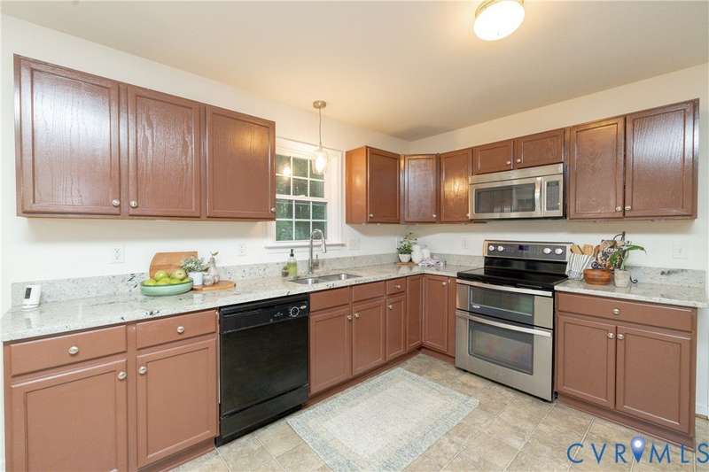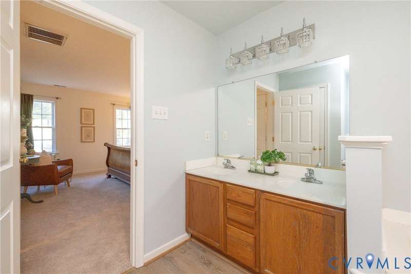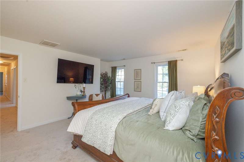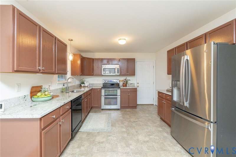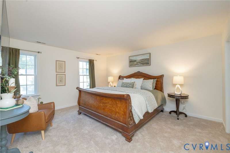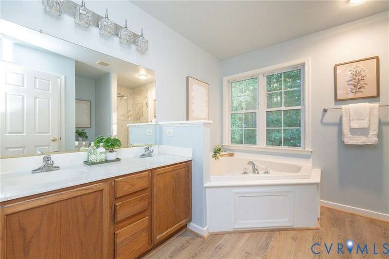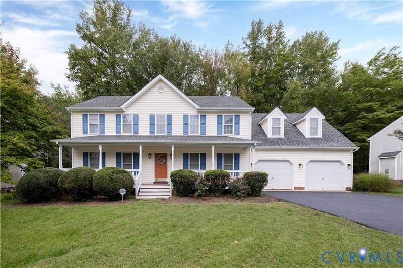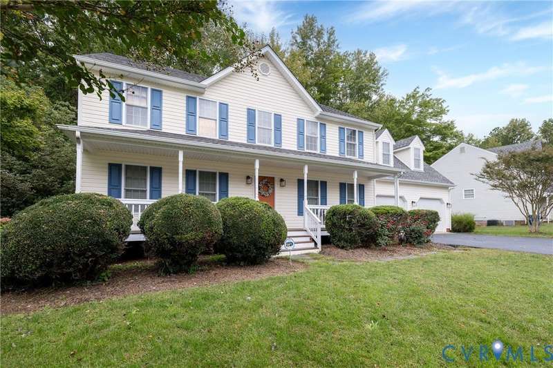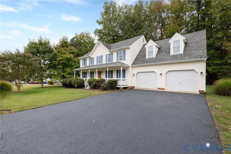 This impressive 5-bedroom, 3.5-bath colonial offers not one, but TWO primary suites, providing flexible living for families. Boasting 2,456 sq. ft., this home combines thoughtful updates with classic charm. A double-wide paved driveway leads to the 2-car garage, while a slate walkway invites you to the covered full-country front porch. The front yard is beautifully landscaped with mature bushes & trees, vinyl siding, gutters, & shutters. Inside, the foyer with LVP floors, overhead lighting, & half bath opens to the dining room, which flows seamlessly into the family room with carpet, recessed lighting, & double doors to the back deck. The eat-in kitchen features LVP floors, granite countertops, wood cabinetry, stainless steel appliances, a flat-top range, prep area, pantry, & direct garage access with a pedestrian door & electric hot water tank. Upstairs, the primary suite includes carpet, a large walk-in closet, & ensuite with LVP floors, soaking tub, walk-in shower with glass doors, rain head & waterfall tile surround, double vanities, & additional closet space. The second primary suite has LVP floors, double-door closets, & its own ensuite. Three additional bedrooms share a full hall bath with LVP floors. The laundry closet features side-by-side washer & dryer with overhead shelving & lighting. Carpeted stairs & hallway provide attic access for extra storage. Step outside to the back deck overlooking a wooded backyard with a storage shed. Other updates include dual-zone heat pump HVAC, updated countertops, updated master shower, & LVP flooring in the secondary primary bedroom. Move in & enjoy a home designed for comfort, space, & versatility.