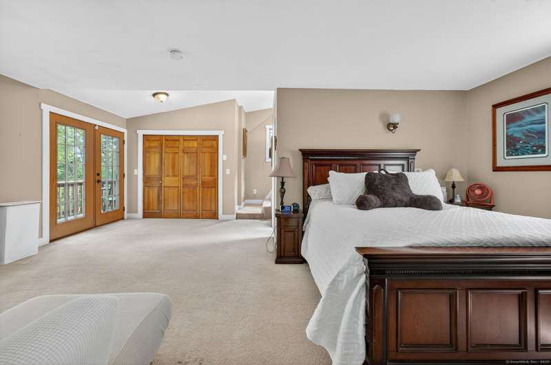 Tucked away on a private, wooded 1.44-acre lot with mature plantings located on a quiet cul-de-sac in the Town of East Lyme, this well maintained home offers a serene retreat. With 2,285 square feet of living space, this home features four well-appointed bedrooms, including a private primary suite with French doors and balcony, and 3.5 bathrooms - providing plenty of comfort and space for family and guests. The inviting backyard includes an in-ground pool, an expansive new deck with stunning views of surrounding trees, and a retaining wall that creates additional usable yard space. A specially designed accessible path allows for easy movement of specialty vehicles, ideal for collecting firewood or for outdoor projects. Updates abound: a new roof, new deck and steps, new pool liner, kitchen appliances, chimney liner, wood stove, pellet stove, walk up attic, partially finished basement, a two car garage and more to ensure modern comfort and peace of mind. Conveniently located close to be