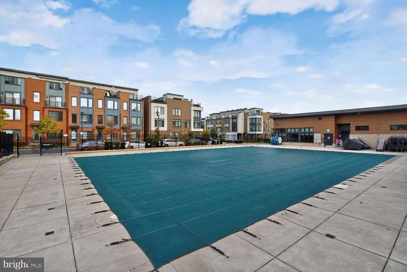 Trendy townhouse condo featuring a private rooftop deck. The main floor includes a spacious open floor plan with 10' ceilings, hardwood floors, and a coffered ceiling. The gourmet kitchen boasts a stunning 16' quartz countertop waterfall island, white cabinets, and stainless steel appliances. The are also living and dining ares. The upper level features a large main bedroom suite with a generous walk-in closet and an adjoining main bath equipped with a frameless glass shower and double sinks. Two additional large bedrooms and a full bath are also located on this level, along with a washer and dryer. Access the private rooftop deck from the upper level, while the lowest level includes a one-car garage. The community has excellent amenities such as a pool, fitness center, clubhouse, playgrounds, workspaces and dog park. The property is conveniently located near shops and Shady Grove Metro. A real beauty.