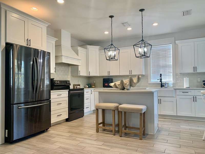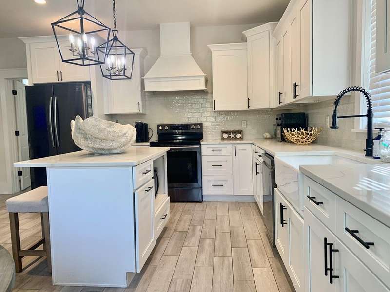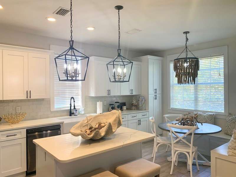 Style and function come together in this 3-bedroom, 3.5-bath home in Barefoot Cottages, offering a relaxed beach vibe with thoughtful design throughout. The open-concept main level welcomes you with upgraded finishes and a kitchen designed for easy coastal living. Quartz countertops, stainless steel appliances, and abundant cabinetry make meal prep simple after a day on the sand. The quartz-topped island adds extra seating and storage, while the dining area features built-in bench seating. The large primary suite includes a walk-in closet and private bath. A half bath with washer and dryer completes the main floor. Upstairs, two additional bedrooms feature laminate flooring, TVs, and their own private bathrooms, making them ideal for guests or family. One upstairs bedroom opens to a screened porch, perfect for enjoying evening breezes. A second screened porch is located at the front entry, offering a comfortable spot for morning coffee or relaxing after a day on the water. This home is conveniently located near the community's larger pool and clubhouse, which includes fitness equipment and an upstairs gathering area. Barefoot Cottages has two additional pools, a hot tub, BBQ areas, and walkable pathways throughout the neighborhood great for morning strolls or walking the dog. St. Joseph Bay and nearby sugar-sand beaches are just minutes away, and both Port St. Joe and Mexico Beach provide easy access to dining, shopping, and coastal activities. The home is sold furnished and is ready for use as a primary residence, second home, or vacation rental.
