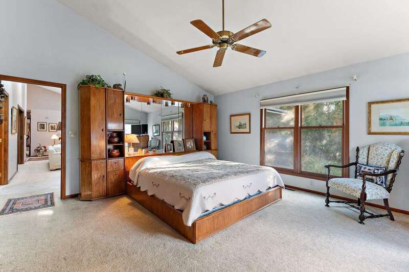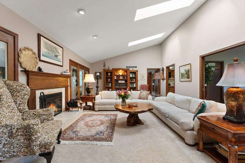 One of the few detached single-family homes in the highly sought-after St. Andrews Village! This gated community is perfectly situated just blocks from Lake Michigan and right along Long Beach Country Club's Hole 7, ideal for golf lovers and lake life enthusiasts alike. Step inside the welcoming foyer and into a spacious Living Room featuring vaulted ceilings, skylights, a wood-burning fireplace with a stunning wood mantel, and double doors leading to a sun filled Three-Season Room. The Kitchen with adjoining Breakfast Room and main floor Laundry make everyday living effortless, while the open flowing design and natural light create a warm, inviting space. The Primary Suite is tucked away on its own wing, offering dual walk-in closets, double vanity, jetted whirlpool tub, tile floors, glass shower, warming lights, and convenient access to the Laundry Room and main level half bath. On the opposite side, you'll find two additional Bedrooms (one perfect as a Home Office) and another full bath. St. Andrews Village offers carefree, maintenance-free living with exterior and grounds upkeep included in the monthly HOA. Enjoy the community pool, clubhouse, hop on your golf cart with direct golf course access, or take a stroll and head to the beach just a few blocks away. This home is perfect for buyers seeking comfort, convenience, and a vibrant lifestyle in a prime location. Schedule your tour today!