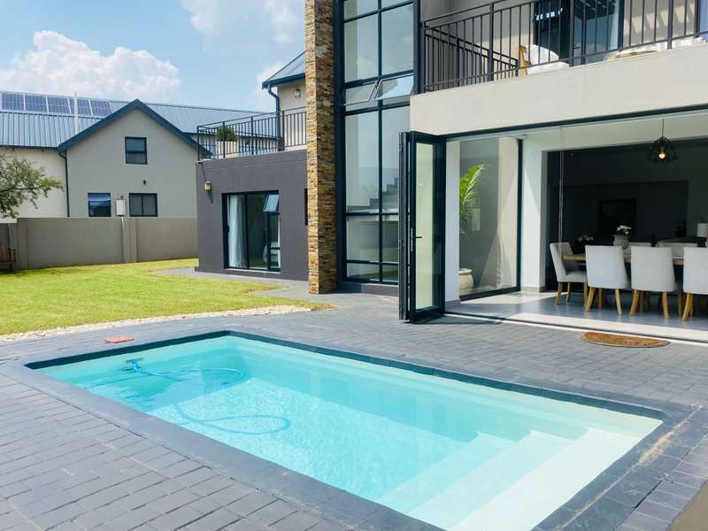 Exquisite 4-Bedroom Home in La Camargue Private Country Estate Experience the perfect fusion of modern luxury and tranquil country living in this stunning 4-bedroom home, set within the prestigious La Camargue Private Country Estate in Hartbeespoort. With expansive living spaces and breathtaking panoramic views of the Northern Mountains, this residence is designed for those who value comfort, style, and elegant entertaining. Property Highlights:: 4 Spacious Bedrooms & 3 Elegant Bathrooms The master suite is a true retreat, featuring a walk-in dressing room with abundant cupboard space and a luxurious full en-suite bathroom, complete with a freestanding bath, separate shower, and double vanity. The third and fourth bedrooms share a chic bathroom, while the fourth bedroom, located on the lower level, enjoys the privacy of its own en-suite bathroom. State-of-the-Art Open-Plan Kitchen A chef’s dream, this modern kitchen is equipped with premium finishes and includes a separate scullery and pantry, offering a perfect blend of style and functionality. Expansive Living Areas The open-plan layout seamlessly connects the living, dining, and kitchen areas, flowing effortlessly onto a covered patio with a built-in braai. Whether hosting guests or enjoying family time, this space is designed for easy entertaining. Separate TV Room A cozy TV lounge offers the ideal spot for family movie nights or moments of quiet relaxation, adding to the versatility of the home. Outdoor Oasis The beautifully landscaped garden is a true sanctuary, featuring a sparkling swimming pool and a charming boma area. Set against the backdrop of the Northern Mountains, this space offers a serene setting for relaxation or entertaining. Double Garage & Abundant Parking The property includes a double garage for secure parking, with additional open parking spaces for convenience. Prime Location Situated within one of the area’s most sought-after estates, this home offers peace, privacy, exceptional security, and access to nature’s beauty—creating the perfect environment for relaxed, refined living. This exquisite home combines luxury, comfort, and elegance, making it an ideal sanctuary for discerning buyers seeking the best in country living. Call for your exclusive viewing !!!