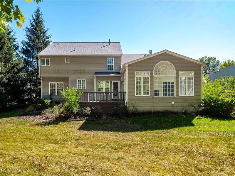 Over 3000 sq ft Center Hall Colonial on a .63 acre cul de sac lot in one of the most sought-after neighborhoods in east Avon! This exceptional home greets you with a 2-story foyer, high ceilings and loads of windows throughout! Off the center foyer is a private office w/French doors and bay window, and inviting living and dining rooms. Spacious open kitchen w/island seating & generously sized eating area opening to the vaulted Family Room. The Family Rm shares a double-sided fireplace and French doors with the all-season Sun Room. The sunroom leads to a deck overlooking a spacious, partially fenced and wooded lot with loads of privacy and room to roam. First floor Laundry is also a Mudroom as you enter from the garage. Upstairs features a large primary suite w/walk-in closet & bath with large tub, shower, double sinks. 3 additional bedrooms & hall bath are generously sized w/great closet space. The finished Recreation Room in the basement provides even more space for relaxation or entertaining. Tons of storage throughout, including a generous pantry. HVAC 2013, Roof 2016. Irrigation/sprinkler system throughout front and back yards. Amazing opportunity to put your touch on a wonderful home in a great development in Avon! This home has it all: Location, Layout and Lot!