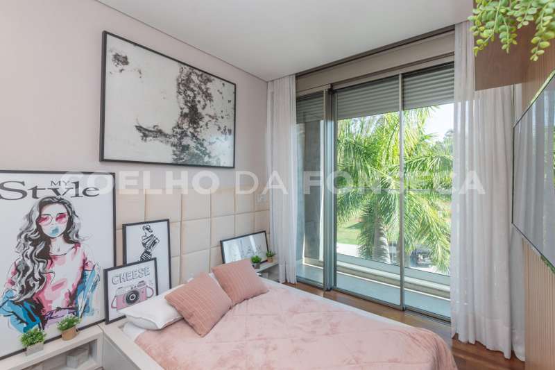 Casa no condomínio TAMBORÉ II, com 700m² área construída, 5 dormitório(s), 5 suíte(s), 6 vaga(s), 8 banheiro(s), piscina, aceita permuta, escritório, sauna, depósito, ar condicionado, dep. de empregados, aquecedor solar.