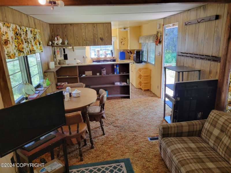 1960 mobile home situated on .98 acre not far from the Kenai River. The vintage home retains its classic character with original features, offering a turn key cozy living space. This property can serve as a home, a base camp for fishing, or a residence while building your dream home. Well, septic, electricity and natural gas are present, although the home currently operates on oil heat. Enjoy the peace of rural living with the convenience of being in reach of local amenities.
