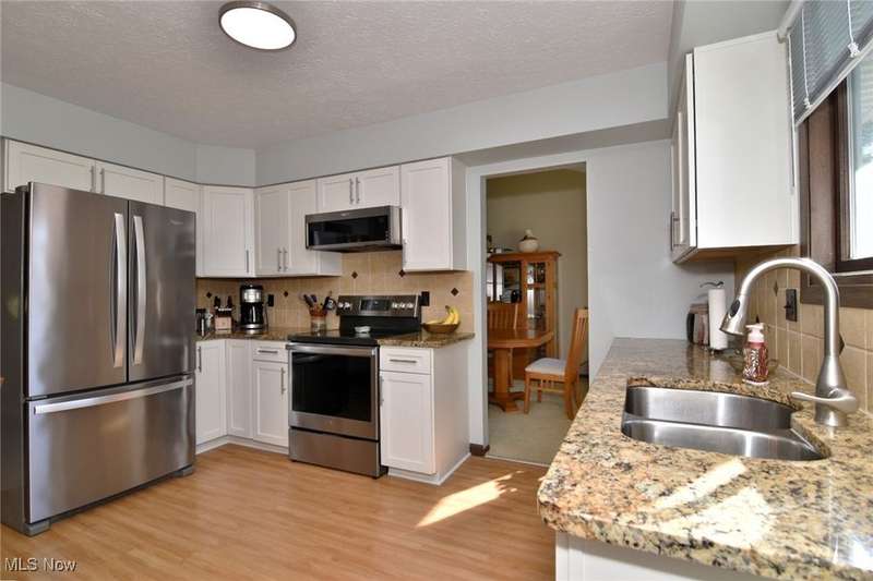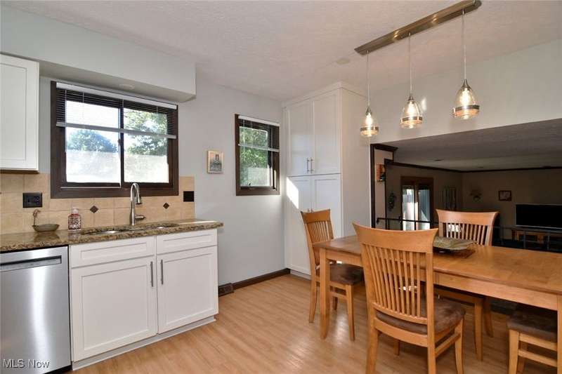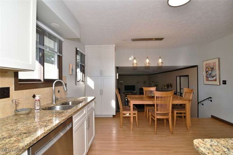 Welcome to this impeccably maintained split-level residence in South Euclid. Upon entering, step up to the elegant living room, highlighted by a cathedral ceiling and striking bay window that showcases the home's impressive curb appeal. The adjoining dining room provides for comfortable seating, creating an inviting space for both daily and formal gatherings. The recently renovated kitchen features cream shaker-style cabinetry, lovely granite countertops, stainless appliances, and a custom pantry equipped with pull-out shelving for exceptional functionality. Just a few steps down, the family room serves as the heart of the home, offering generous entertainment space, newer carpeting, and direct access to the outdoors. Pella custom sliding glass doors with integrated blinds open to a covered patio, manicured lawn, and newer fencing?providing a private setting ideal for relaxation and outdoor enjoyment. The second level includes a spacious primary bedroom with ample closet space and direct access to the full bath, which also opens to the hallway. Two additional well-sized bedrooms complete this floor. The lower level offers versatile space, perfect for a home office, gym, or playroom, along with a dedicated laundry section, half bath and plenty of storage. Ideally located near shopping, dining, medical facilities, and within walking distance to the bus line. This meticulously cared-for home is one you won't want to miss.