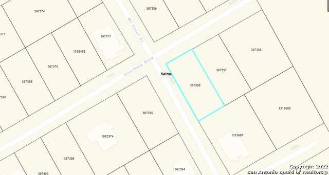 Desirable, large corner lot in Selma Parks Estates ready for your custom built dream home. Enjoy beautiful views and seclusion while keeping easy access to I35 and 1604. Nearby shopping at The Forum, as well as quick access to Randolph Brooks AFB and IKEA.