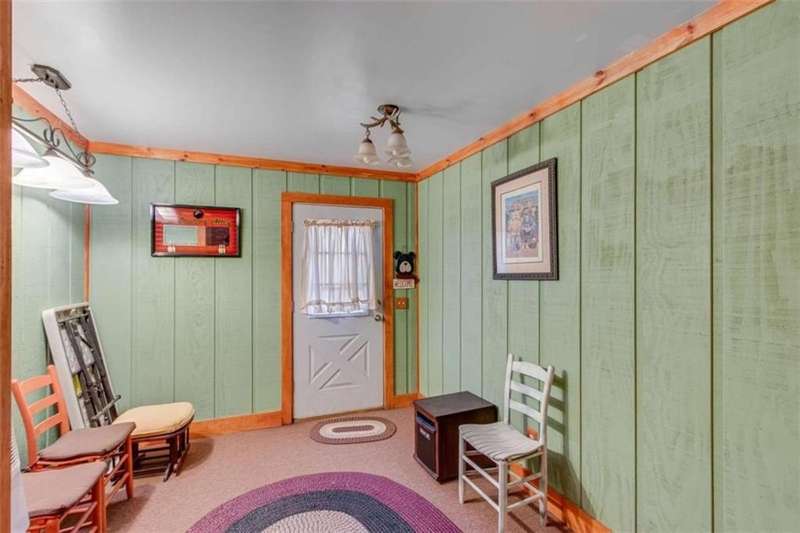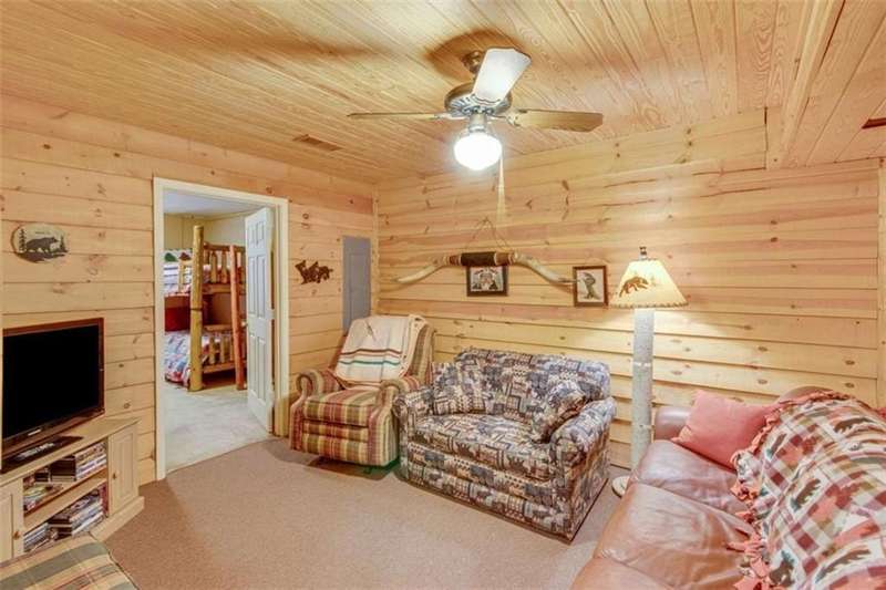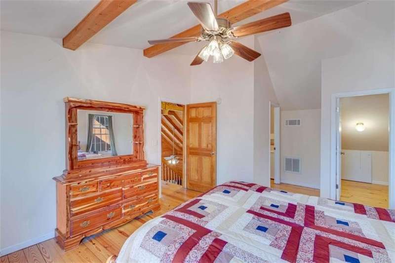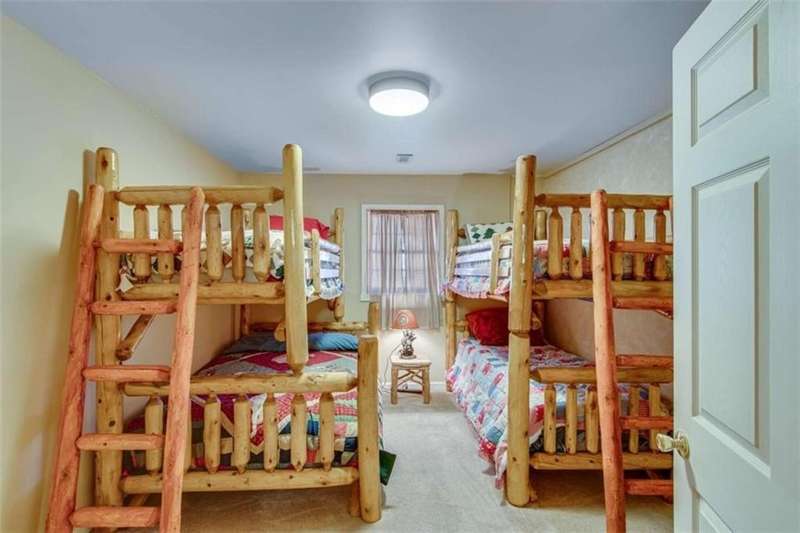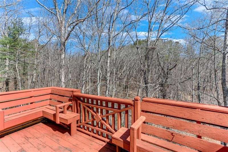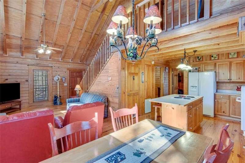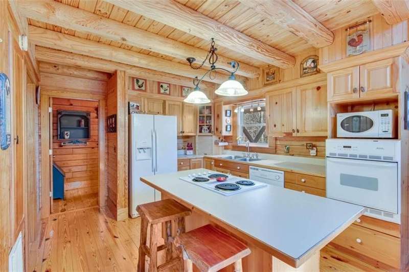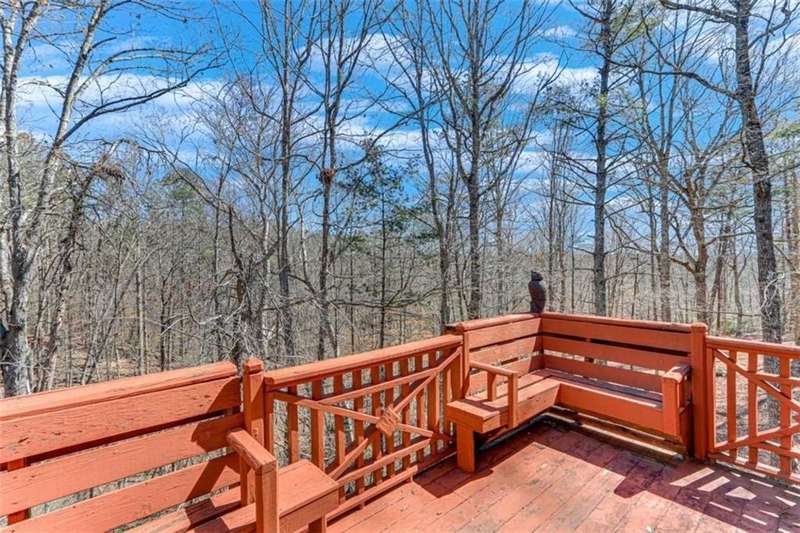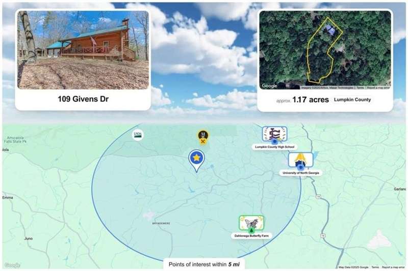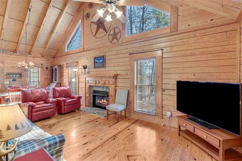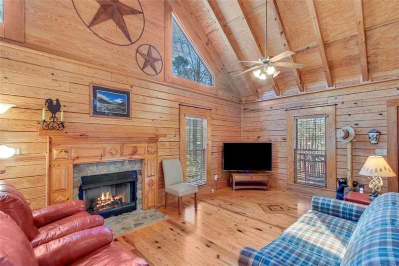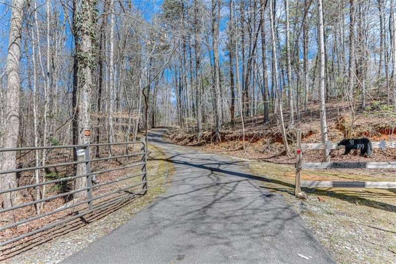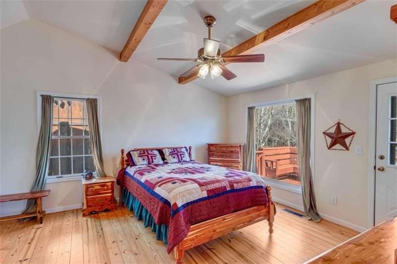 Discover your dream retreat with this stunning custom-built log home, perfectly situated just 10 minutes from downtown Dahlonega and conveniently close to Hwy 400. No HOA on this turnkey property. This charming cabin features a bedroom and bathroom on all three levels, ensuring privacy and comfort for everyone. The detached two-car garage offers ample workshop space and a finished room upstairs, ideal for hobbies or guests. Enjoy relaxing moments on the inviting rocking chair front porch, where you can sip your morning coffee or unwind with a glass of wine in the evening. Inside, the home boasts beautiful pine floors on the main level and upstairs, complemented by beamed pine ceilings that add warmth and character. A cozy gas log fireplace creates a welcoming ambiance for family gatherings. Loved by a family as a vacation getaway, this home is now ready for its next owners. Whether you're seeking a primary residence or a serene vacation spot, this cabin is the perfect choice, and is sold completely furnished. Schedule a visit today to view one of Dahlonega's unique cabins in the woods!