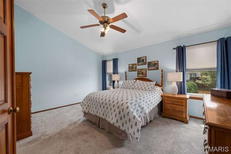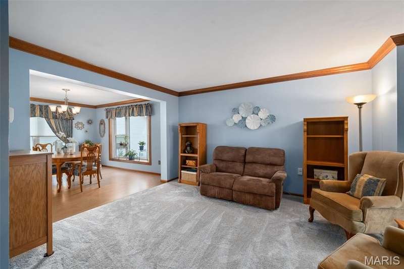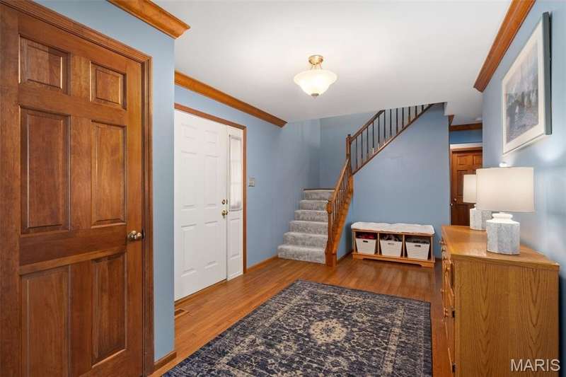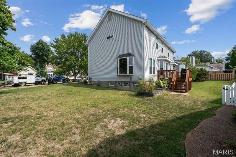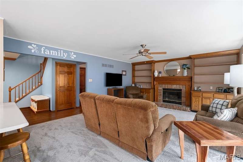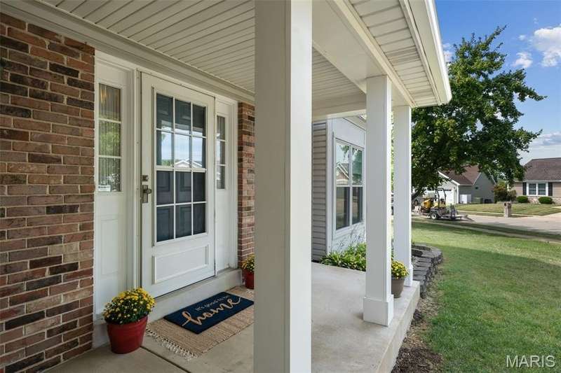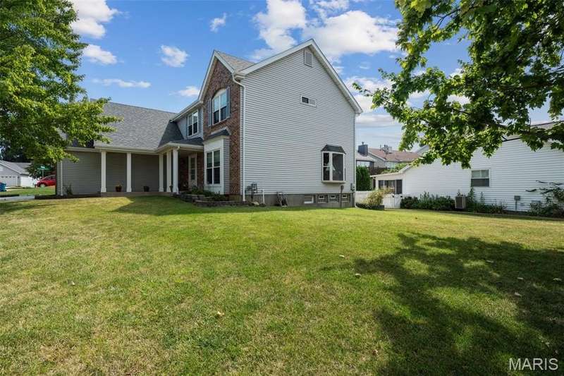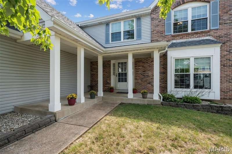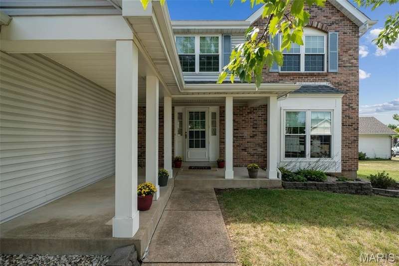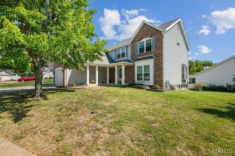 Improved Price! Living-Large! Located in the sought-after Lindbergh School District, this 5-bedroom, 2.5-bath home in Southridge Pines offers over 2,500 sq. ft. of comfortable living space. Set on a corner lot with lovely curb appeal, you’ll appreciate the covered front porch and brand-new driveway. Step inside the inviting foyer that opens to a spacious great room featuring a wood-burning fireplace, custom built-ins, and a large bay window. The adjoining eat-in kitchen boasts abundant cabinetry, generous counter space, peninsula bar seating, gas range, built-in microwave, and dishwasher—perfect for both daily meals and entertaining. A formal dining room with picture window and a living room filled with natural light create flexible gathering spaces. A half bath and main-floor laundry complete the first level. Upstairs, the vaulted primary suite is a true retreat with a walk-in closet, bonus double closet, and updated ensuite bath featuring dual vanities, tile floors, soaking tub, and separate shower. Four additional bedrooms, each with double closets, share a full hall bath. The lower level offers ample storage and the opportunity to finish for additional living space- sump pump and full bath rough-in. Newer Champion windows, fresh carpeting, and some hardwood flooring, this home is move-in ready. The attached 2-car garage provides convenience, and the deck and shaded side yard provides the space to play. Don’t miss your chance to create new memories in this exceptional home.