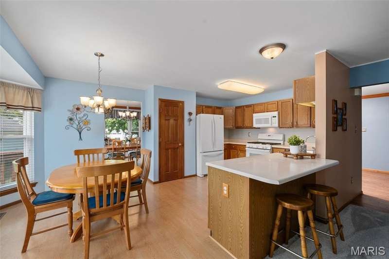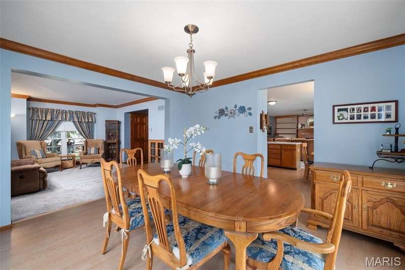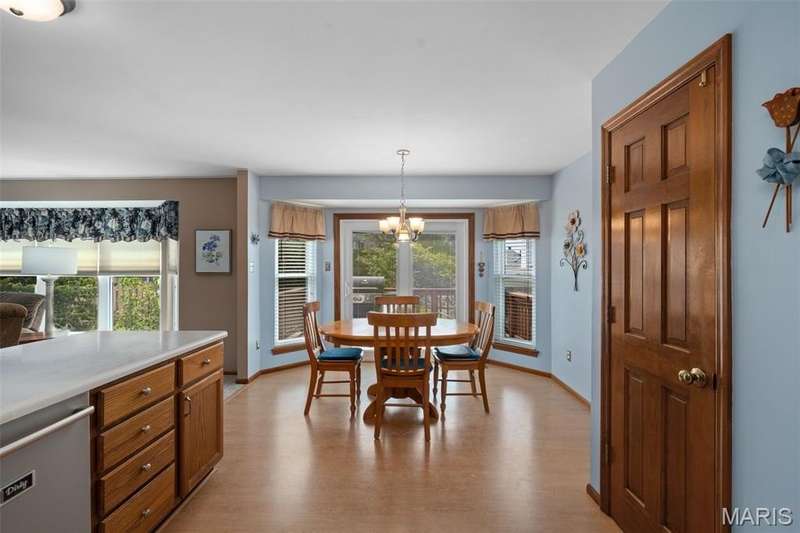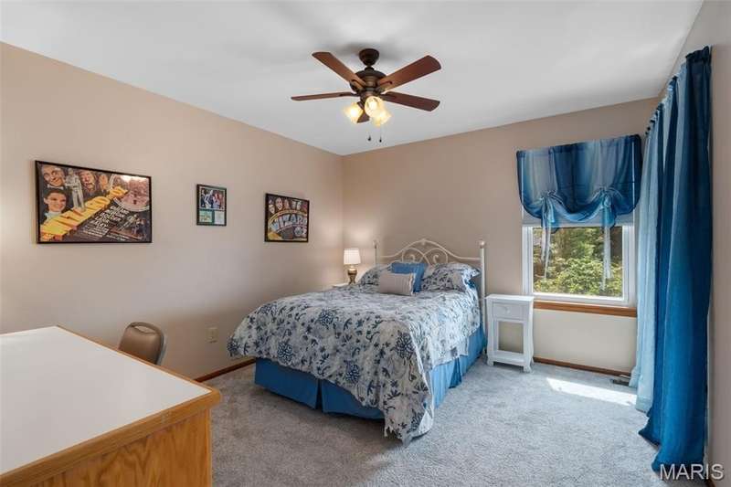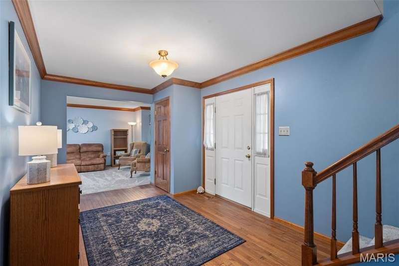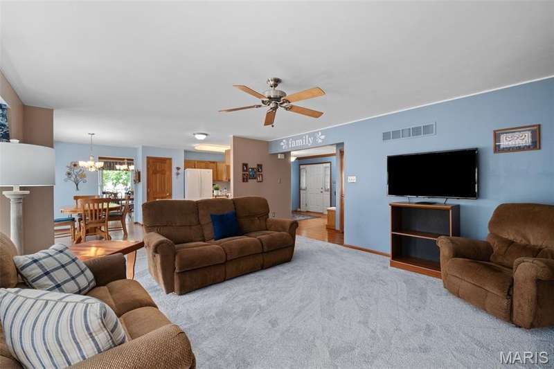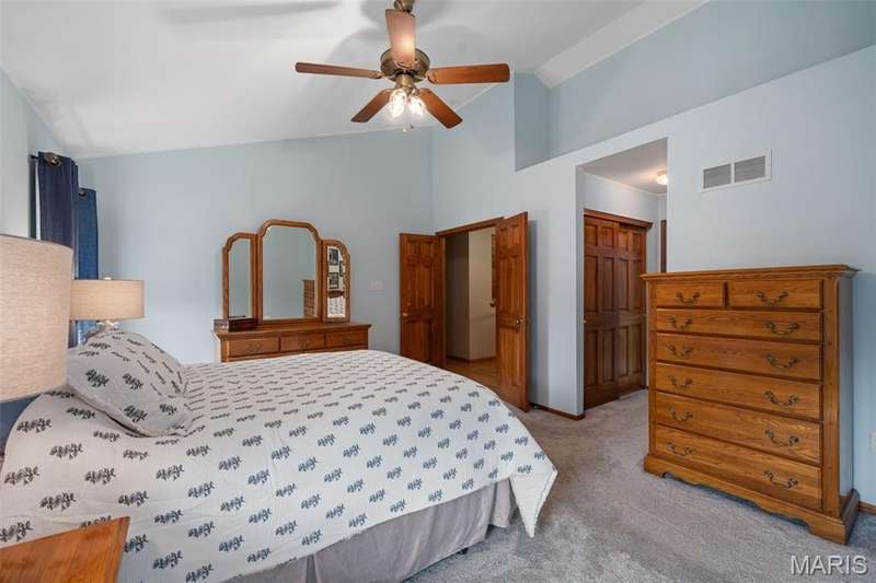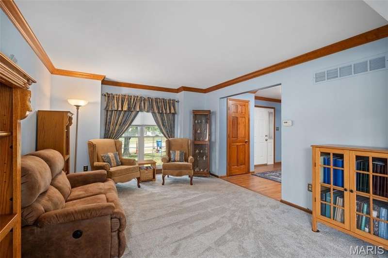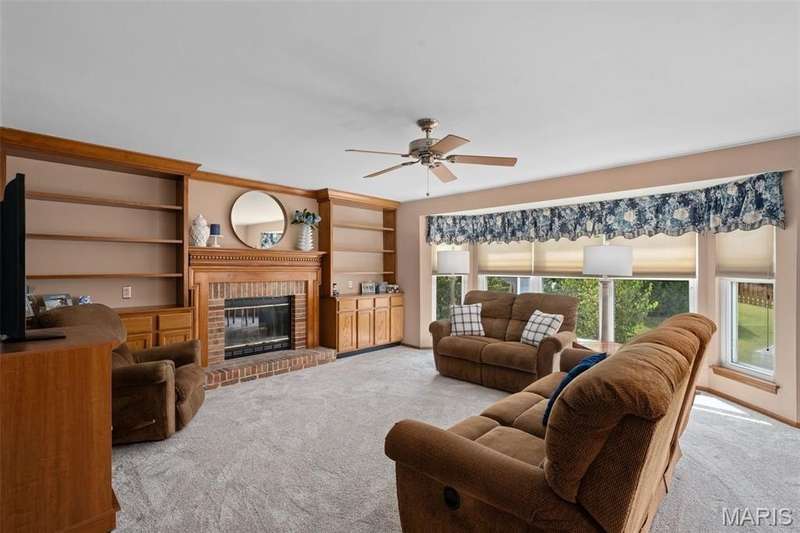 Improved Price! Living-Large! Located in the sought-after Lindbergh School District, this 5-bedroom, 2.5-bath home in Southridge Pines offers over 2,500 sq. ft. of comfortable living space. Set on a corner lot with lovely curb appeal, you’ll appreciate the covered front porch and brand-new driveway. Step inside the inviting foyer that opens to a spacious great room featuring a wood-burning fireplace, custom built-ins, and a large bay window. The adjoining eat-in kitchen boasts abundant cabinetry, generous counter space, peninsula bar seating, gas range, built-in microwave, and dishwasher—perfect for both daily meals and entertaining. A formal dining room with picture window and a living room filled with natural light create flexible gathering spaces. A half bath and main-floor laundry complete the first level. Upstairs, the vaulted primary suite is a true retreat with a walk-in closet, bonus double closet, and updated ensuite bath featuring dual vanities, tile floors, soaking tub, and separate shower. Four additional bedrooms, each with double closets, share a full hall bath. The lower level offers ample storage and the opportunity to finish for additional living space- sump pump and full bath rough-in. Newer Champion windows, fresh carpeting, and some hardwood flooring, this home is move-in ready. The attached 2-car garage provides convenience, and the deck and shaded side yard provides the space to play. Don’t miss your chance to create new memories in this exceptional home.