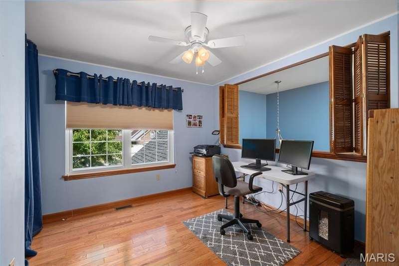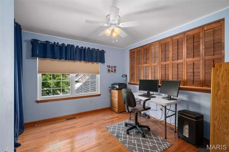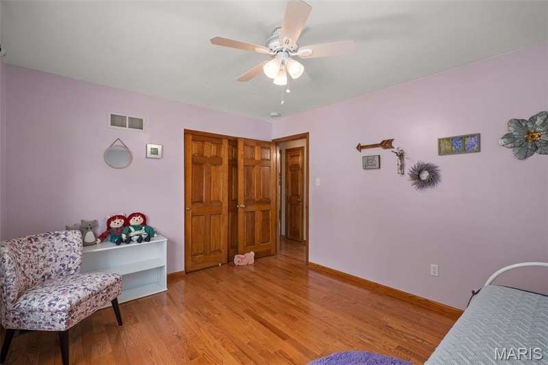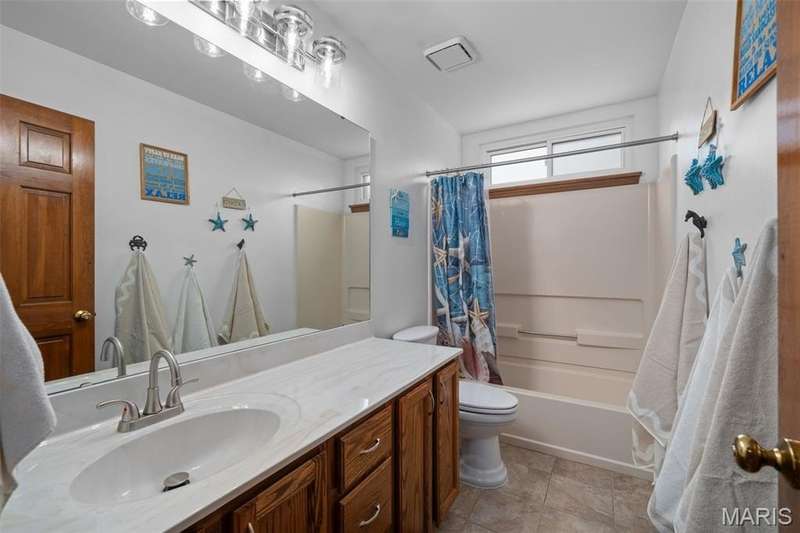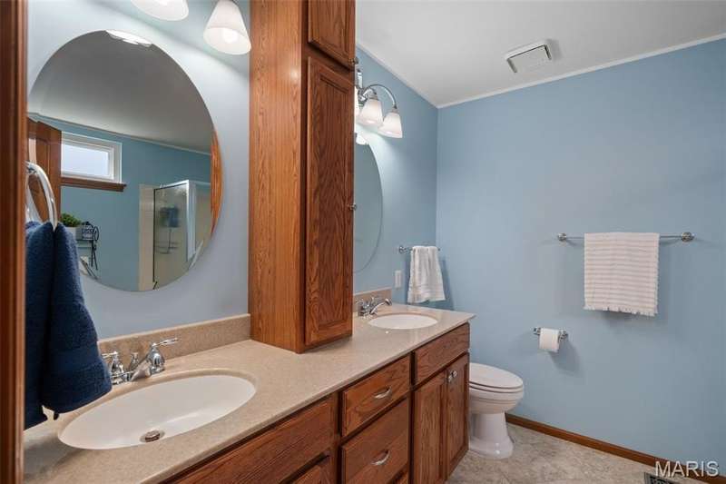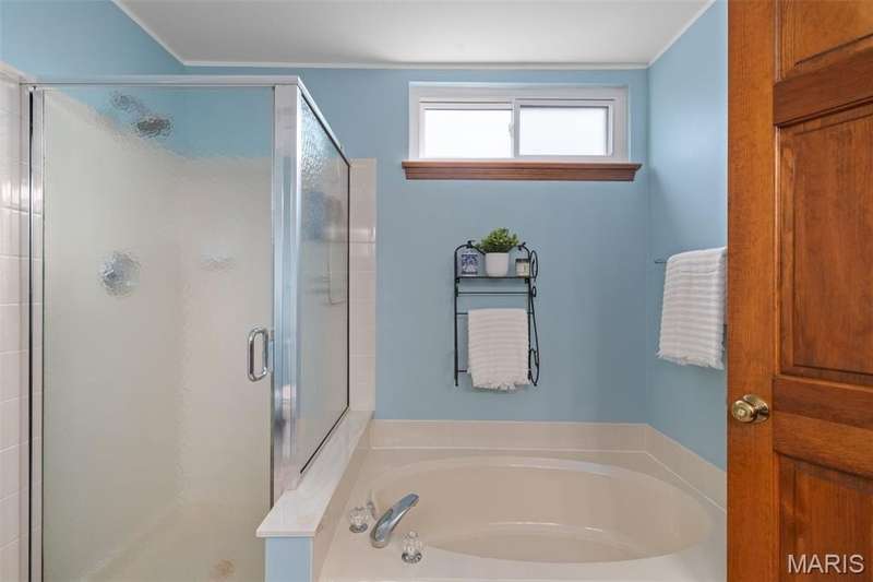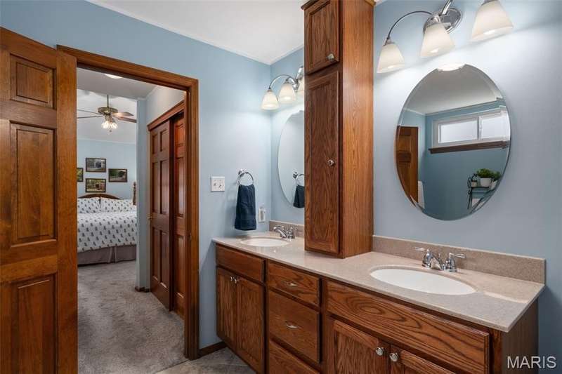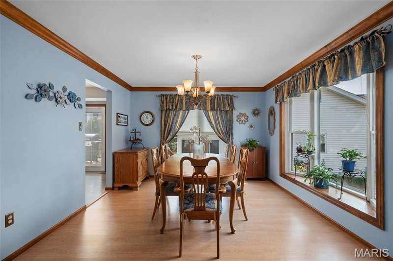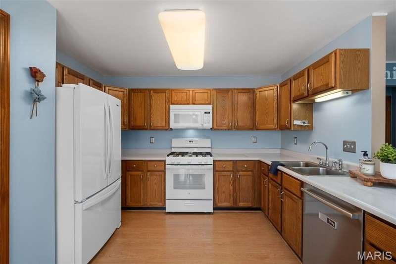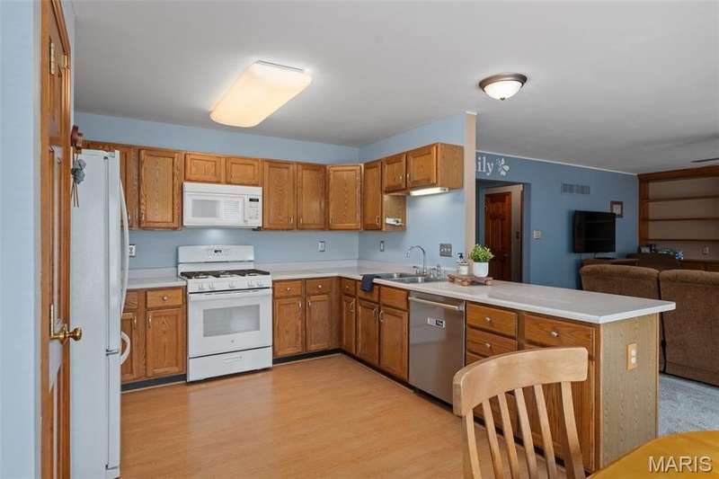 Improved Price! Living-Large! Located in the sought-after Lindbergh School District, this 5-bedroom, 2.5-bath home in Southridge Pines offers over 2,500 sq. ft. of comfortable living space. Set on a corner lot with lovely curb appeal, you’ll appreciate the covered front porch and brand-new driveway. Step inside the inviting foyer that opens to a spacious great room featuring a wood-burning fireplace, custom built-ins, and a large bay window. The adjoining eat-in kitchen boasts abundant cabinetry, generous counter space, peninsula bar seating, gas range, built-in microwave, and dishwasher—perfect for both daily meals and entertaining. A formal dining room with picture window and a living room filled with natural light create flexible gathering spaces. A half bath and main-floor laundry complete the first level. Upstairs, the vaulted primary suite is a true retreat with a walk-in closet, bonus double closet, and updated ensuite bath featuring dual vanities, tile floors, soaking tub, and separate shower. Four additional bedrooms, each with double closets, share a full hall bath. The lower level offers ample storage and the opportunity to finish for additional living space- sump pump and full bath rough-in. Newer Champion windows, fresh carpeting, and some hardwood flooring, this home is move-in ready. The attached 2-car garage provides convenience, and the deck and shaded side yard provides the space to play. Don’t miss your chance to create new memories in this exceptional home.