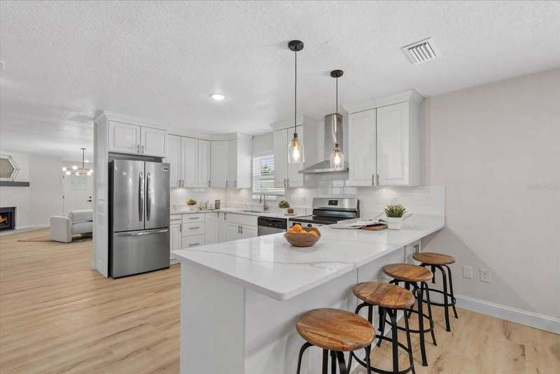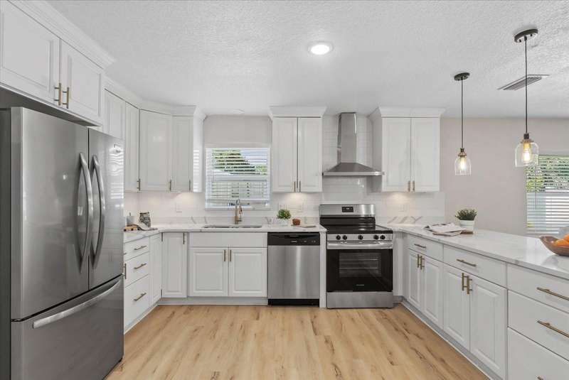 Step into 5718 Magnolia Street — a beautifully renovated 3 bed 2 bath home in an unbeatable location. Just minutes from Publix, LA Fitness, restaurants, shopping, and only a short drive to St. Petersburg’s award-winning beaches, this property offers the best of coastal Florida living. With no flood damage from recent hurricanes, this rare find has been thoughtfully updated inside and out. The interior showcases stunning Calacatta countertops, brand-new stainless steel appliances, and upscale finishes throughout. Wood-look flooring flows seamlessly through the home, while newly remodeled bathrooms provide a spa-like retreat with gleaming tile and premium fixtures. The bright, open-concept floor plan is ideal for both entertaining and everyday comfort. Impact windows enhance energy efficiency and storm protection, while the fresh stucco exterior adds to the home’s curb appeal. Out back, a spacious, fully fenced yard is shaded by a majestic oak tree — an ideal setting outdoor enjoyment. Every detail of this home has been carefully curated to ensure it's truly move-in ready. Enjoy comfort and proximity to everything — beaches included — at 5718 Magnolia Street.