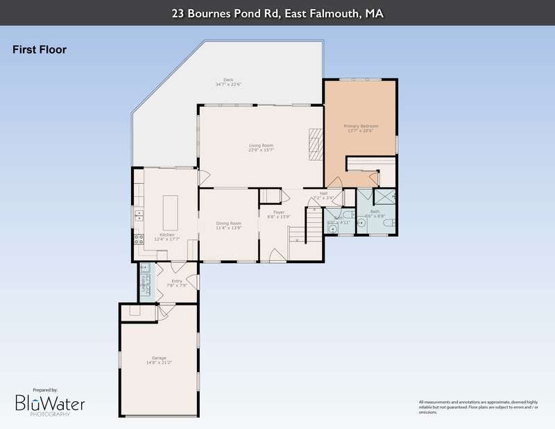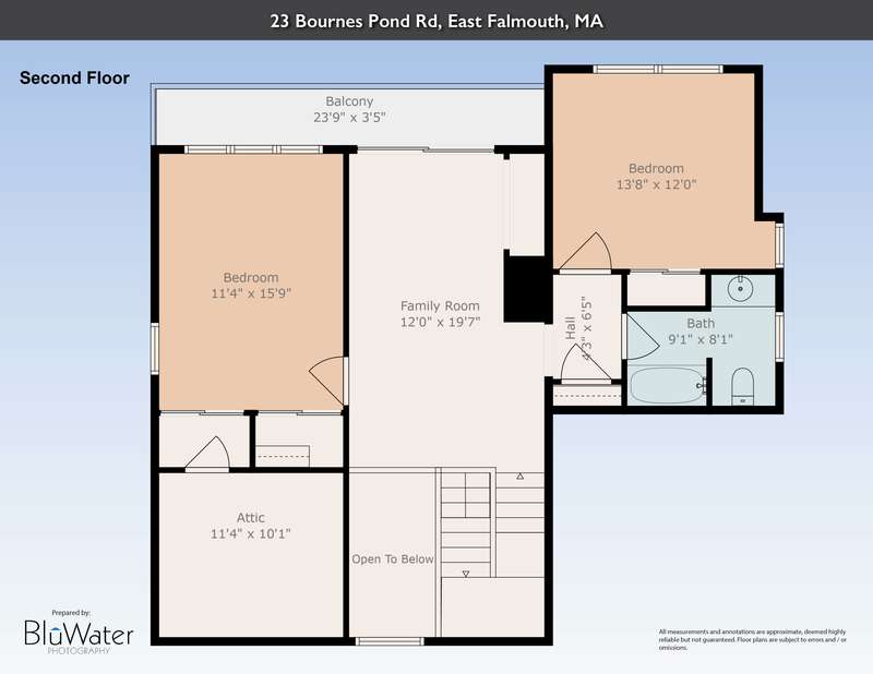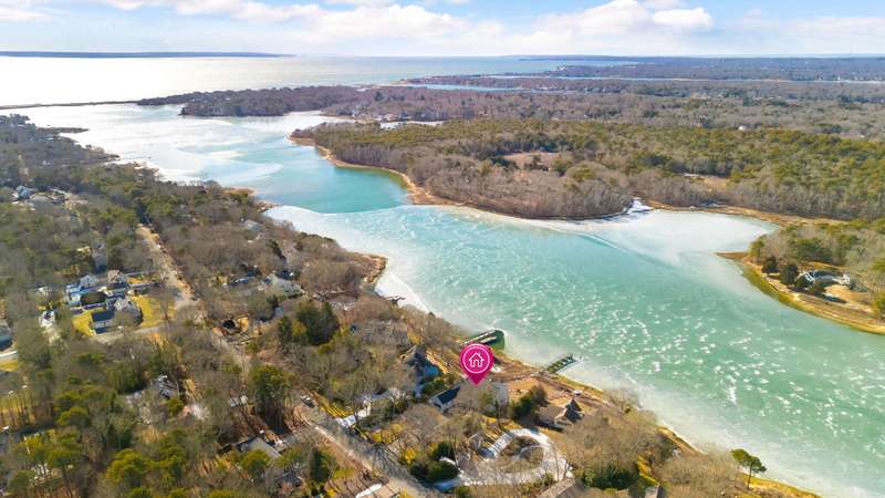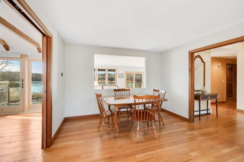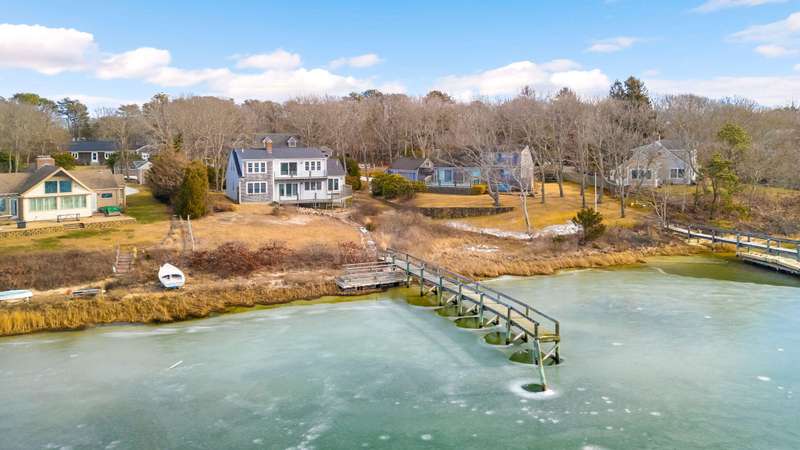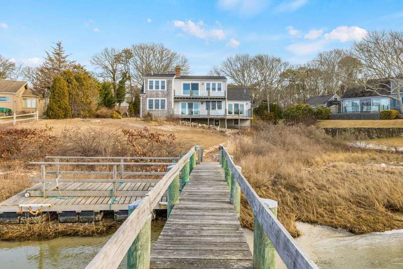 Welcome to this charming custom contemporary cape, nestled at the end of a quiet neighborhood on a waterfront lot on Bournes Pond. This 1985 home offers water views from every room. The first floor offers one floor living w/ primary bedroom & bath, living room w/ fireplace & sliders out to deck, dining room, kitchen & laundry room. The 2nd floor features 2 bedrooms, bath & family room w/ exterior balcony. The lower level is finished walkout. The private dock makes for easy launch of boat, kayak or paddleboard to explore Bournes Pond, a saltwater estuary leading out to Vineyard Sound. Only a mile from Menauhant Beach, this property can be enjoyed year-round w/ beautiful ocean breezes, delightful strolls (or Kayak) to the Sound, or clamming in Bournes Pond. And, it's only a short drive to the many ocean beaches, marinas, golf, miles of bike paths & Falmouth's famous shopping boutiques & lively nightlife adding to the enjoyment & lifestyle that only owning a home like this can bring!