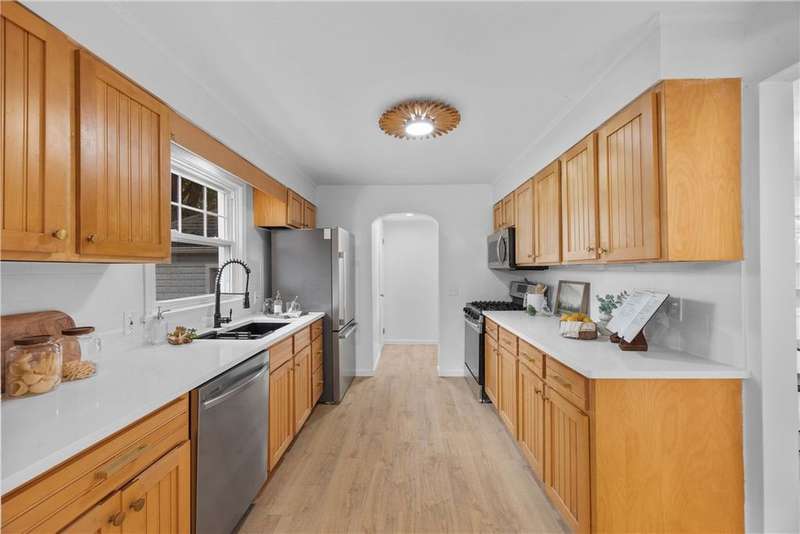 Move-In Ready Gem in Irondequoit! Welcome to 288 Hartsdale Rd, a beautifully updated home offering modern comfort and style in a prime location. Step inside to discover new waterproof plank flooring throughout the main level and freshly painted interiors that create a bright, inviting atmosphere.The kitchen shines with quartz countertops warrantied by Lowes, a new backsplash, and brand new appliances including a refrigerator, dishwasher, and microwave. Custom lighting fixtures add a designer touch throughout the home.Both bathrooms have been tastefully renovated, and every door features new hinges and knobs for a cohesive, refreshed look. Additional upgrades include a new hot water tank, a garage door opener, and a recently sealed driveway. The furnace and AC are in excellent working condition, ensuring year around comfort. Lastly, take advantage of the spacious finished basement perfect for a home office, gym, entertainment area, or whatever your lifestyle inspires.This home is truly move-in ready, perfect for buyers seeking quality updates and hassle-free living.