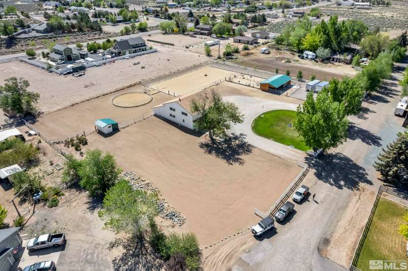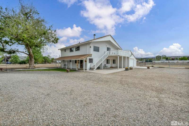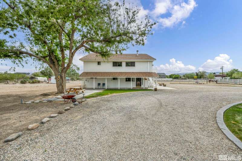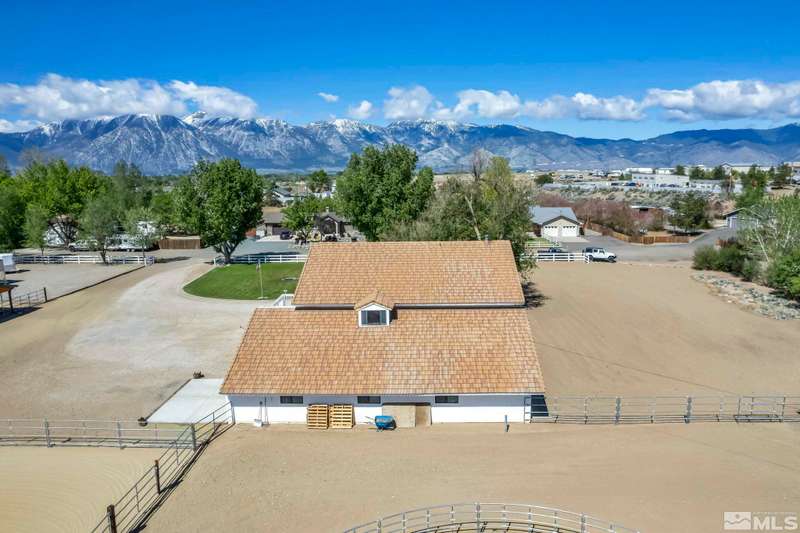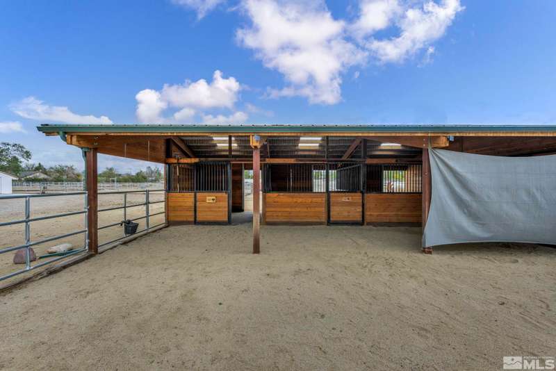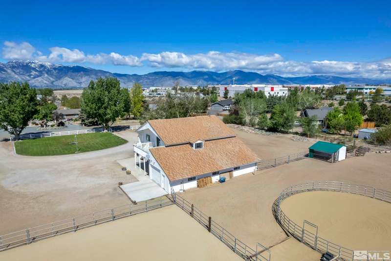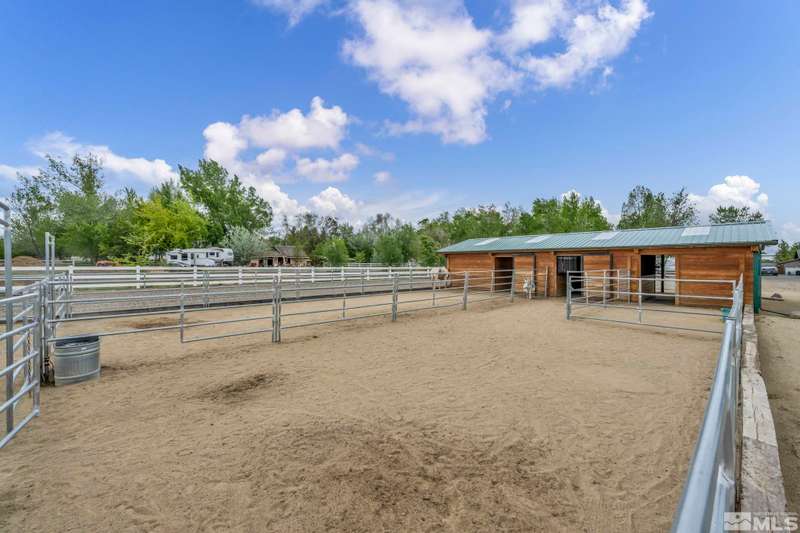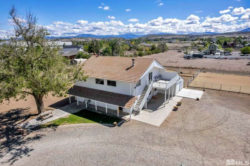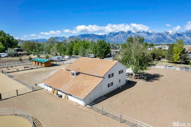 Charming 3-bedroom, 3-bathroom ranchette with a 3-car garage on 1.73 acres of usable horse property. This well-equipped equestrian setup features a 3-stall barn with tack room, spacious corrals, a 10,000 sq ft arena, and round pen—perfect for horse enthusiasts. A beautifully landscaped 7,000 sq ft lawn with automatic sprinklers and a large circular driveway offer great space for outdoor living and entertaining. Located on a quiet cul-de-sac with stunning views of the Sierra and Pine Nut Mountains., Just minutes from Douglas County Fairgrounds and about a mile from BLM land with endless riding trails!