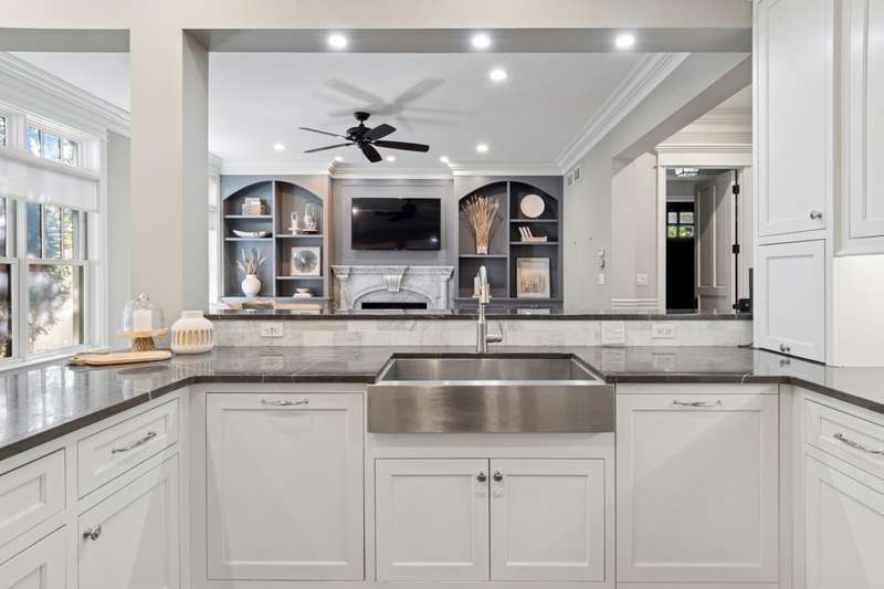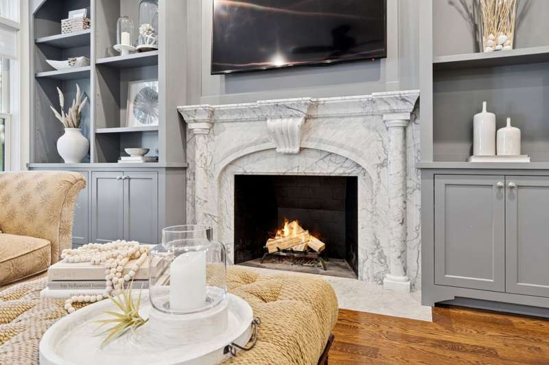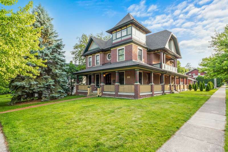 LIVE THE DOWNTOWN NAPERVILLE LIFESTYLE AT 203 S COLUMBIA STREET! Just steps from the heart of downtown, this ICONIC Victorian-style home combines timeless elegance with modern luxury, offering an extraordinary opportunity to live amid boutique shops, award-winning restaurants, and the scenic Riverwalk. BUILT IN 2015, THIS ALL 4-SIDES BRICK HOME SPANS 5,000 SQUARE FEET and showcases 10-foot ceilings on the main level, 9-foot ceilings in the basement, and rich walnut hardwood floors throughout. Step inside to discover hand-carved custom millwork and architectural details that tell a story of artistry & refined craftsmanship. The focal point is a carved marble fireplace by Atelier Jouvence, the same artisans behind the Chicago Art Institute's marble carvings, complemented by locally crafted stained-glass accents that bring vintage charm & character to every room. The 3 oversized imported doors on the main level, sourced from Venezuela, add distinction & architectural presence to the space. THE CHEF'S KITCHEN IS AN ENTERTAINER'S DREAM, FEATURING ALL THERMADOR APPLIANCES, SLEEK MARBLE PIETRA GRAY COUNTERTOPS, AND A CUSTOM BANQUETTE BREAKFAST NOOK, PERFECT for family gatherings or hosting friends. Enjoy a morning coffee or evening glass of wine on the wraparound front porch, soaking in the energy of downtown living. The primary suite is a private retreat, offering a sitting area or home office, a walk-in closet, and an exquisite bathroom with an oversized jetted tub , separate shower, antiqued white woodwork on his-and-her sinks, and black-and-white tiled marbled accents-a perfect blend of elegance & style. With 5 additional spacious bedrooms, each featuring its own en-suite bath with marble countertops & walk-in closet, the home provides privacy & luxury for every family member. The basement, already equipped with a fireplace & rough-in plumbing, offers endless potential for a recreation area, home theater, or guest suite. Modern amenities include 3 furnaces, humidifiers, a/c units & an INSTANT WHOLE-HOUSE HOT WATER SYSTEM - there is no running out of hot water! The detached two-car garage features an upper-level loft, ideal for a workshop, studio, or hobby space, and there's also an extra parking pad for convenience. Experience the vibrant downtown lifestyle-stroll along the Riverwalk, enjoy favorite restaurants like Gia Mia, Santo Cielo, & Vasili's, or take in live music and seasonal festivals just steps from your front door. Minutes from North Central College, award-winning District 203 schools, and the Metra station, this home offers unparalleled convenience. A rare combination of artistry, comfort, and location-203 S Columbia Street invites you to live beautifully in the very heart of Naperville.