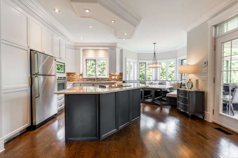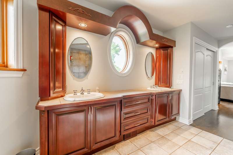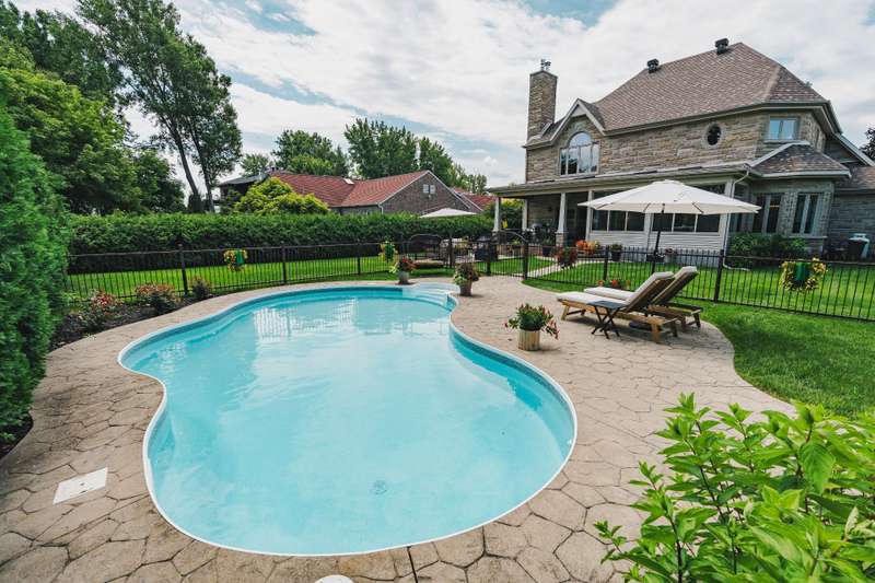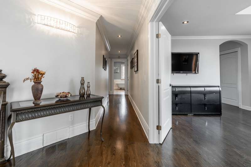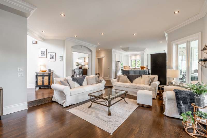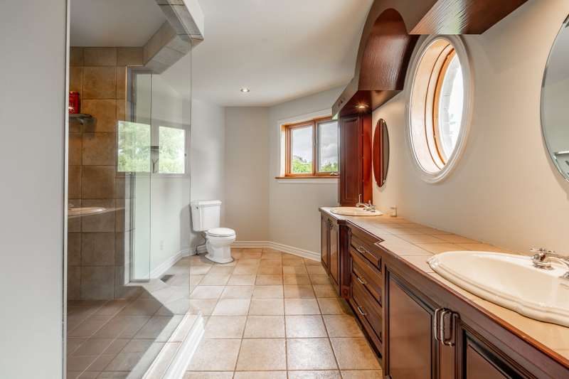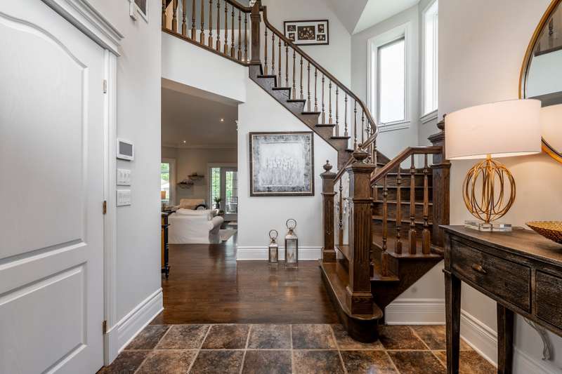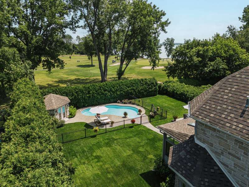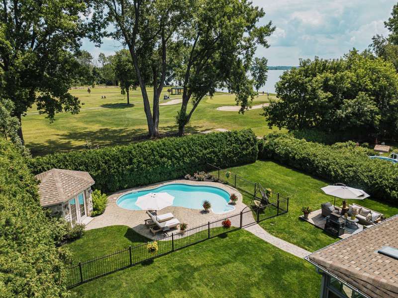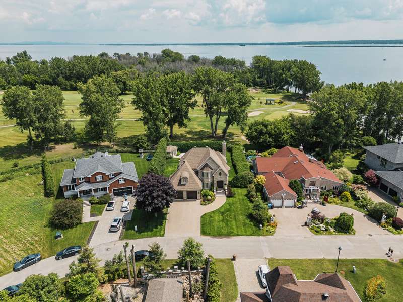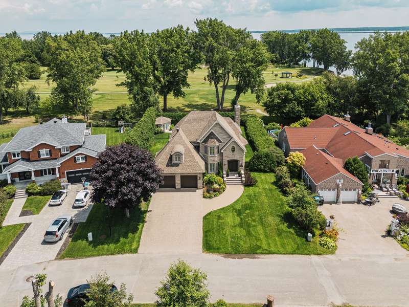 Imposing and timelessly elegant 5-bed residence with the ultimate open floorplan, set on a crescent backing the 7th hole of renowned Atlantide Golf Course,with partial water views and boasting:grand oak staircase & floors,9-18 ft ceilings (1st fl), oversized baseboards/moldings, wood & propane fireplaces, large formal dining room and living room (overlooking the garden),solarium/2nd dining room,custom wood kitchen (quartz) with luxury dinette,spacious primary suite,renovated basement with garage access,oversized double garage (epoxy),a private backyard oasis with fenced salt inground pool,patio,veranda,shed,and municipal boat-launch access.