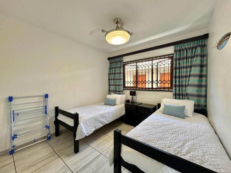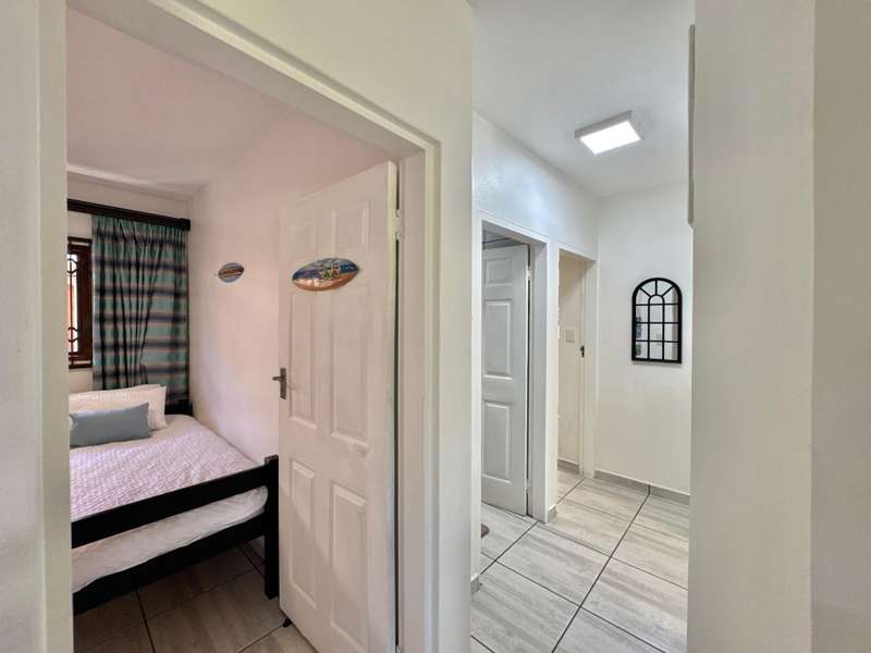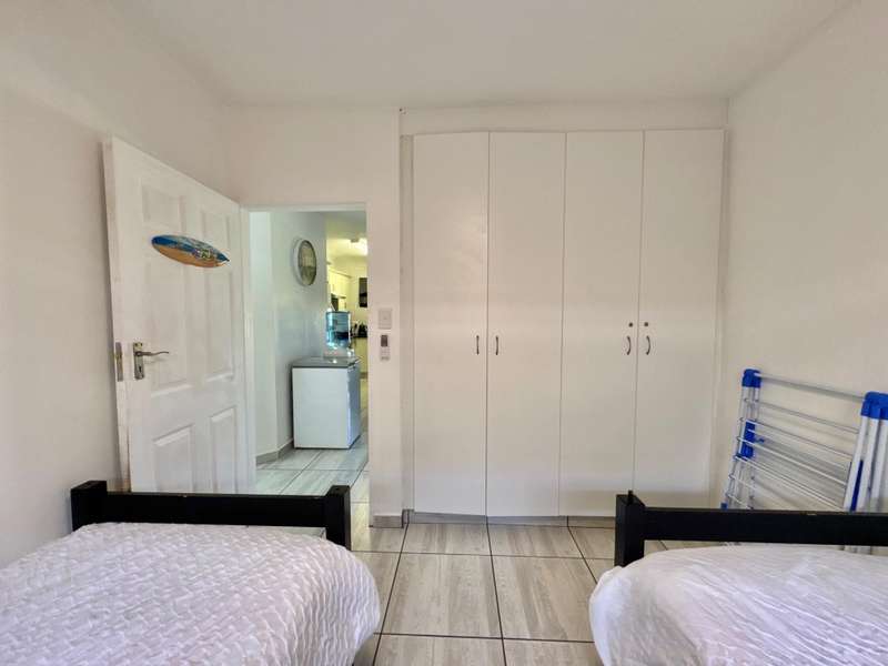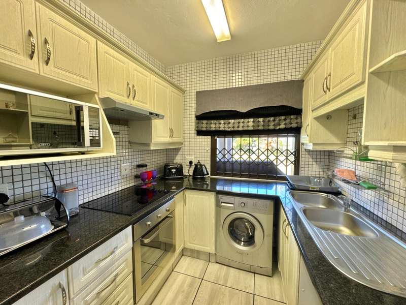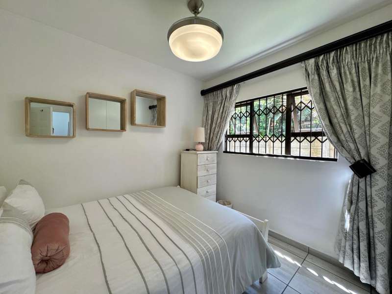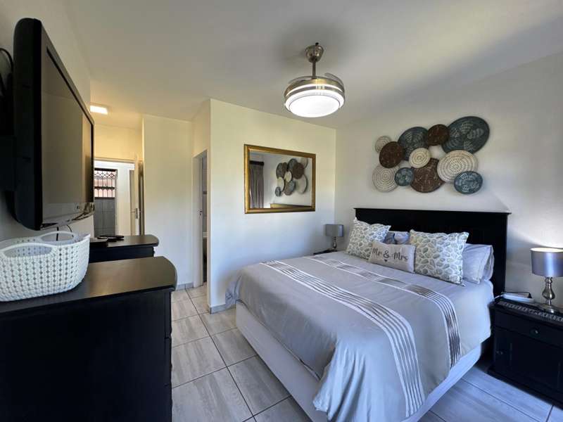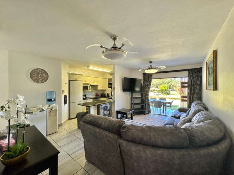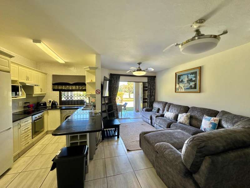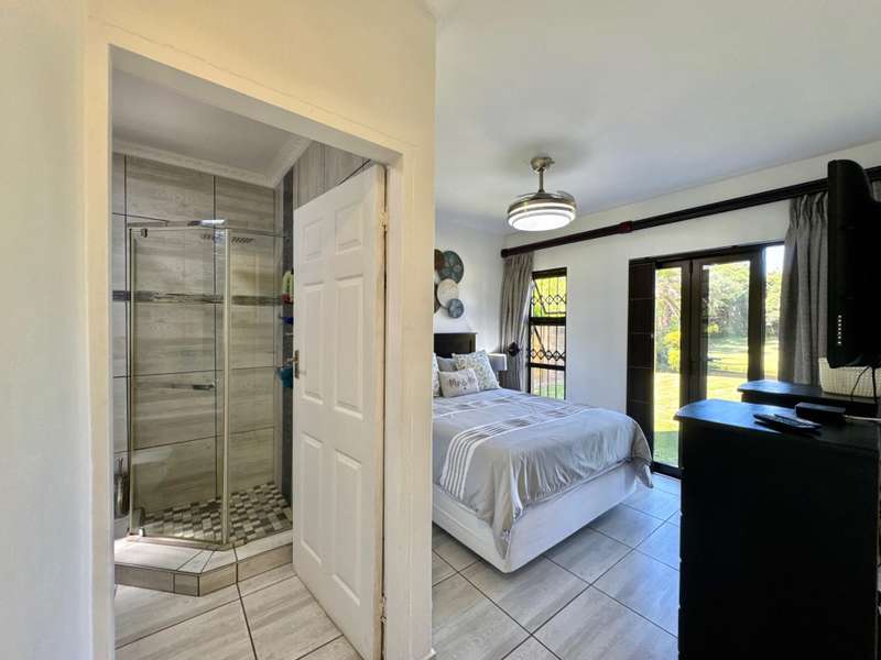 The lounge opens onto a covered patio, where you can unwind while overlooking a peaceful natural stream. The main bedroom, complete with built-in cupboards and a stylish en-suite bathroom, also enjoys direct access to the patio. Two additional bedrooms offer versatility?Çöone with built-in cupboards and the other slightly smaller?Çöboth serviced by a sleek, modern bathroom with a shower.