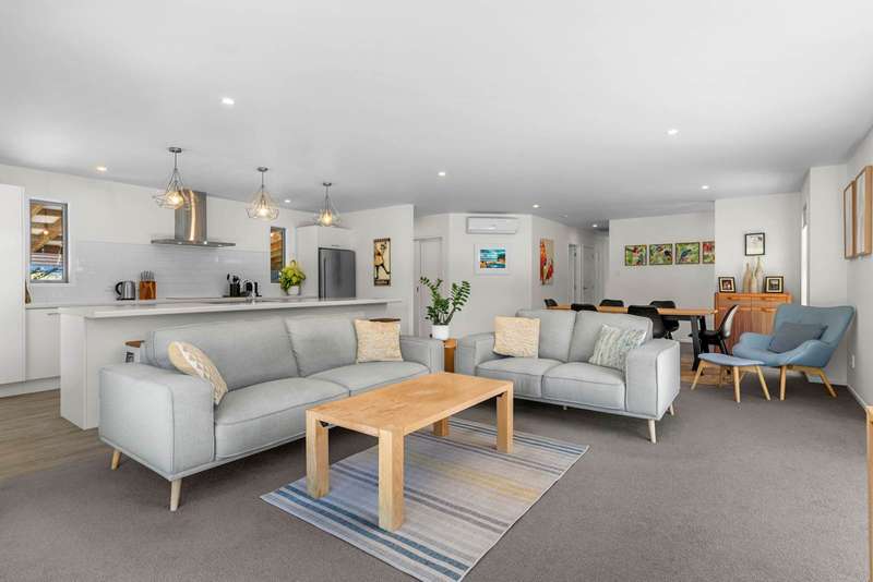 * Light, bright and beautifully presented three bedroom home. * Master has ensuite and walk through wardrobe. * The fabulous modern kitchen and open-plan living area seamlessly flow onto the sunny wrap around deck. * Heat pump in living area plus air conditioning to the bedrooms, for your comfort. * The large 1118m2 section features shady established trees, low maintenance gardens, providing a peaceful retreat or great lock up and leave. * Located just minutes away from the beach, shops, cafes, boat ramp, and golf course, this home offers convenience at your doorstep. * Vendor says sell – call for your appointment to view.
