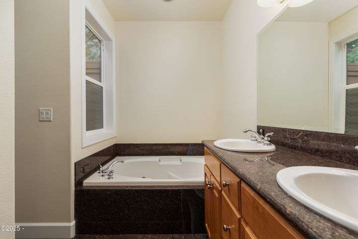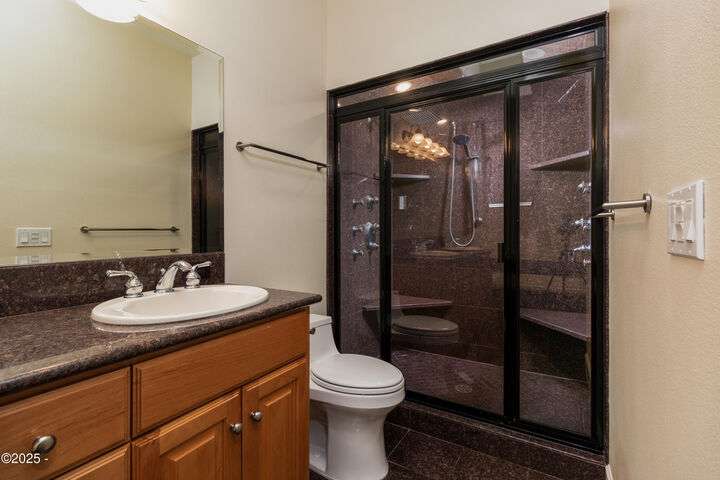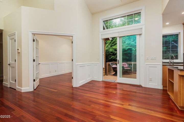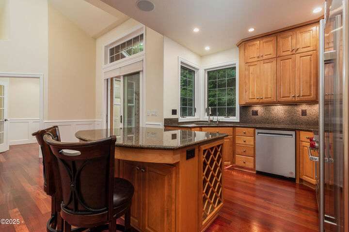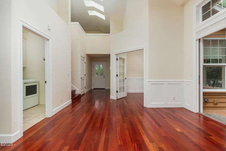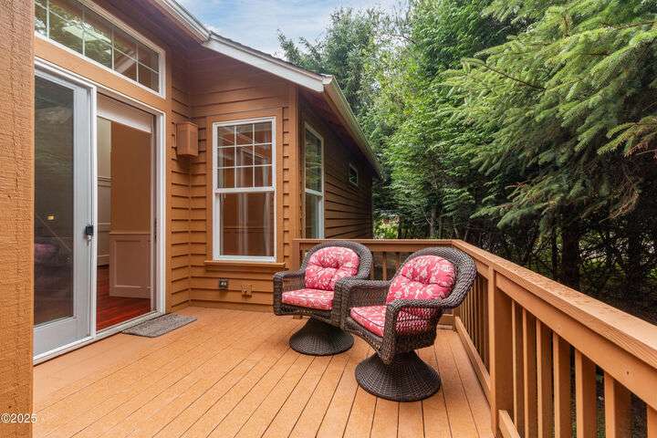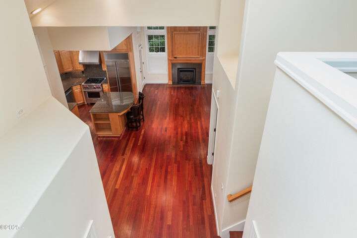 Little Whale Cove gated community, amenities include, inside pool, gym, tennis/pickleball courts, many walking paths to the Ocean front. This Model Home, has only had two owners. Gorgeous Cherry Wood inlaid flooring, Rock Maple built in cabinets, Wolf Gas range, Sub-Zero refrigerator, Granite countertops, New Dishwasher, Disposal, and Reverse Osmosis System installed. New Hunter Douglas Window shades throughout 8K. Steam shower feature, 3 shower heads. New Carpet in family room & bedrooms. New blower/inner parts installed on gas fireplace. New Deck boards, deck and exterior home painted, New gutter guards. Yard Landscaped with drip system installed 10k. Surround Sound system in family room. All known deferred maintenance issues have been addressed by this seller.