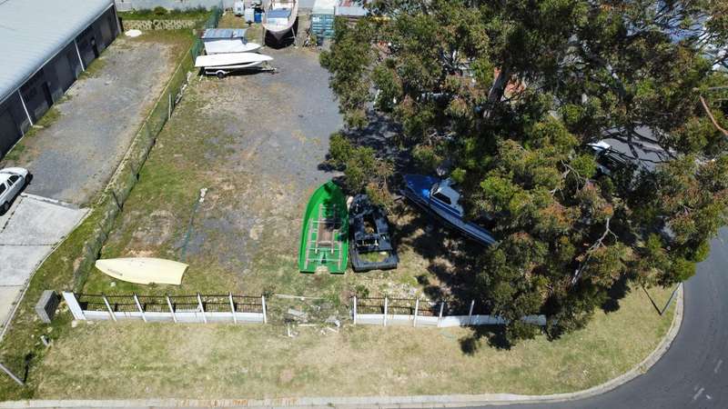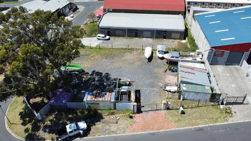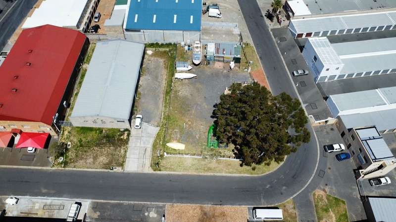 The plot spans 1132m2 with flexible dimensions suitable for various industrial setups in the suburb of Mansfield in Gordons Bay.