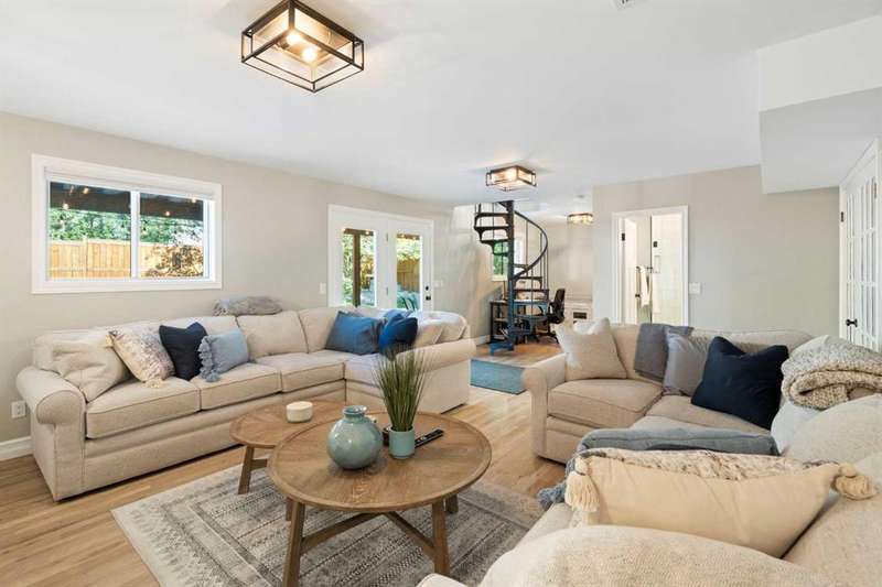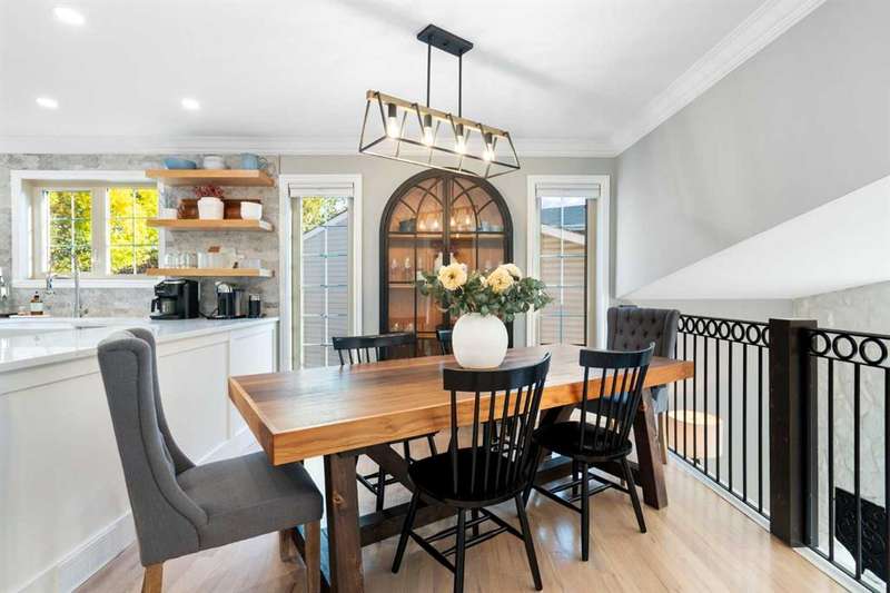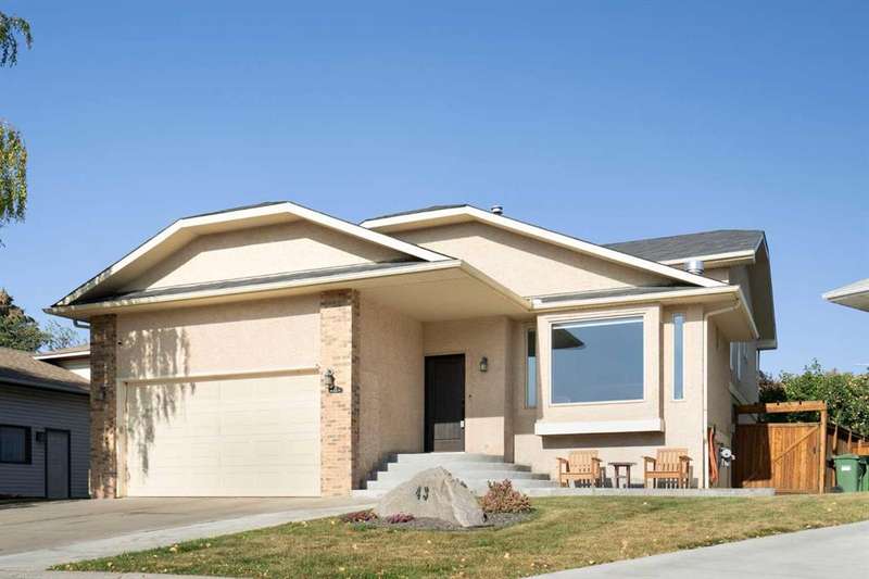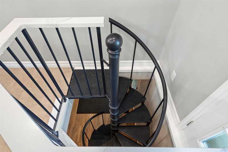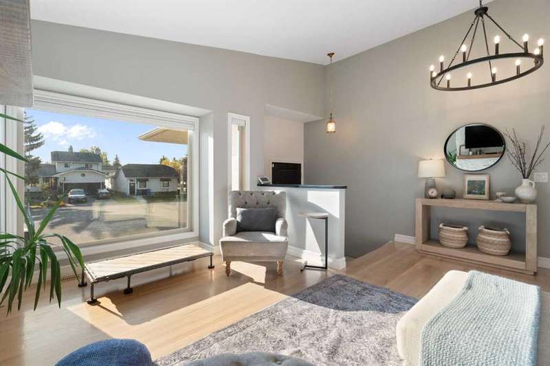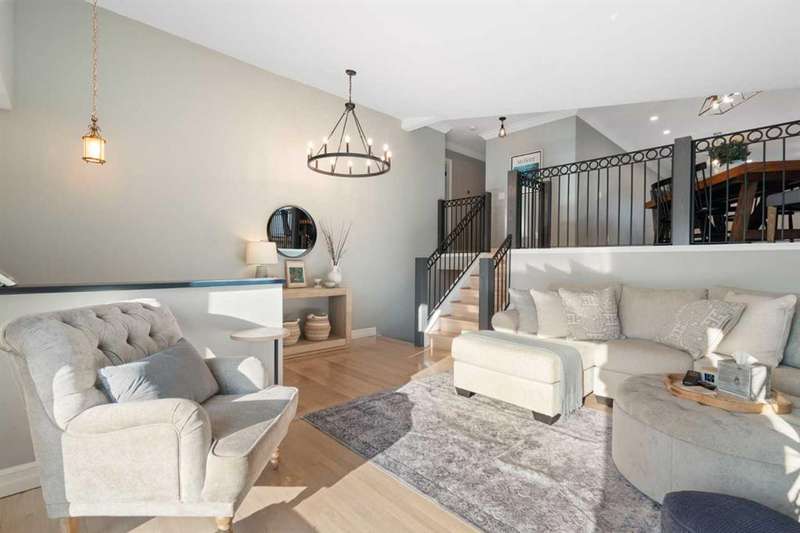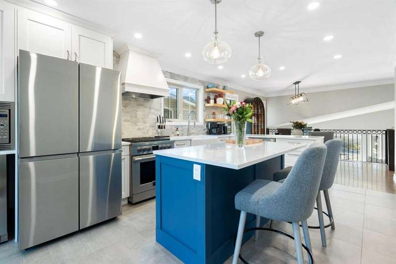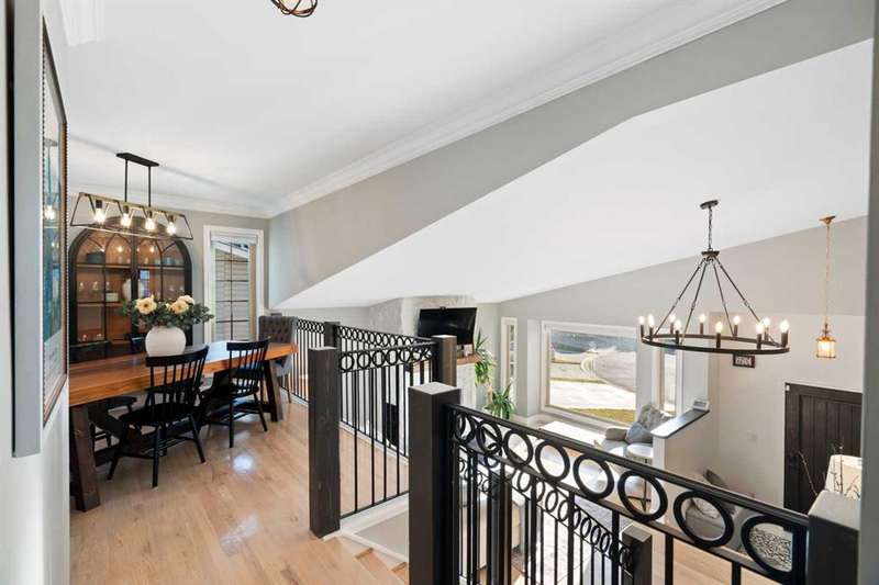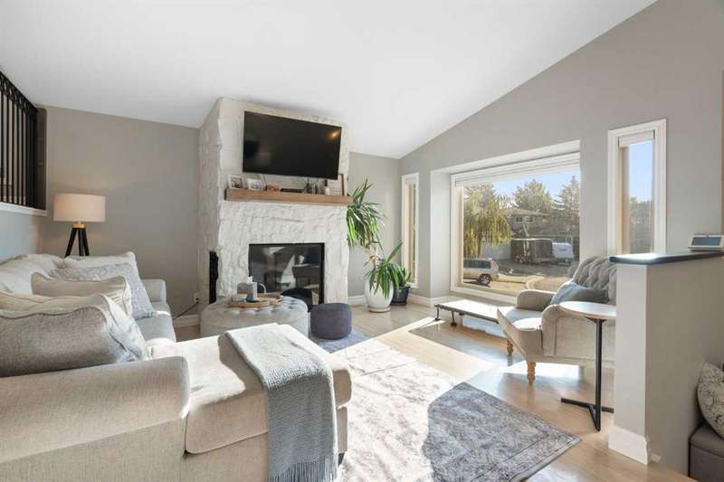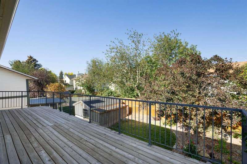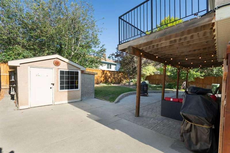 ***PLEASE CHECK OUT THE 3D WALKTHROUGH*** Welcome to this stunning and unique 4 bedroom, 3 bathroom home, perfectly situated in a quiet Scenic Acres cul-de-sac. Fully renovated in 2024, this property blends modern luxury with one-of-a-kind character. Inside, you’ll find real red oak hardwood, custom crown moulding, knockdown ceilings, and custom blinds. The striking spiral staircase from the historic Burns Meat Packing Plant, paired with a custom iron railing from a downtown Calgary landmark, makes this home truly unforgettable. The gourmet kitchen is a chef’s dream with a Fulgor gas stove, built-in wine fridge, custom cabinetry, and imported Spanish tile. French doors off both the kitchen and primary suite open onto a massive deck, perfect for entertaining. Two custom gas fireplaces add warmth and elegance throughout. The walkout lower level extends your living space and opens directly onto the stunningly landscaped backyard, complete with extensive stamped concrete, lush blooming gardens, a dog run, and a large custom-built shed. A standout feature is the oversized garage with 14-foot ceilings and mezzanine, offering endless storage or workshop space. With thoughtful upgrades like an updated central vacuum system and fully custom finishes, this home is a rare find in Scenic Acres.